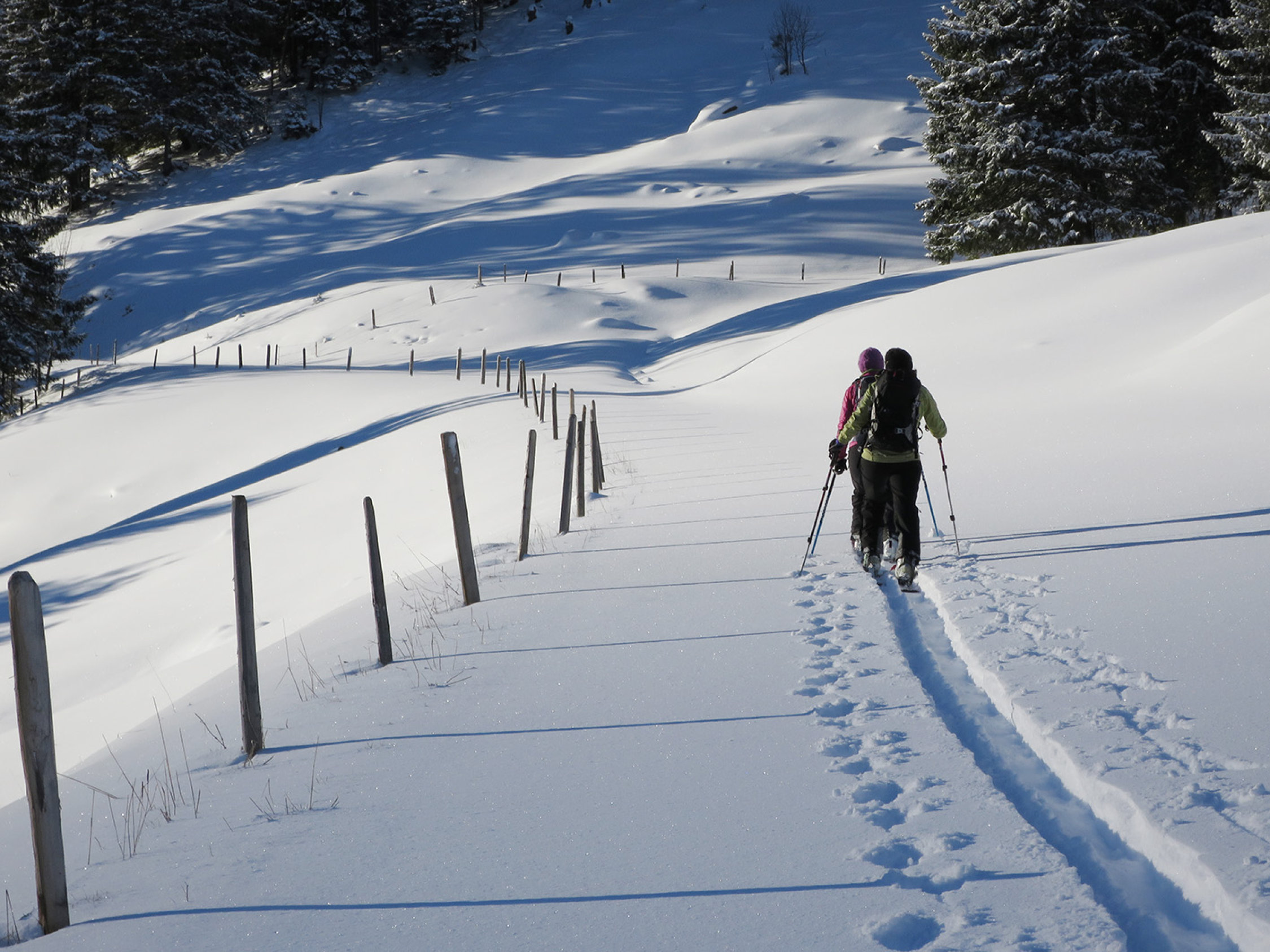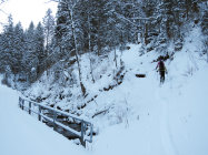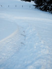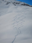 Der neue Schnee scheint recht stabil - wir haben vor allem alte, mit Schnee bedeckte Lawinen beobachtet. Oberhalb, westlich von Ramsen auf ca. 1700m haben wir bei der Abfahrt eine neue Gleitschneelawine gesehen (siehe Foto).