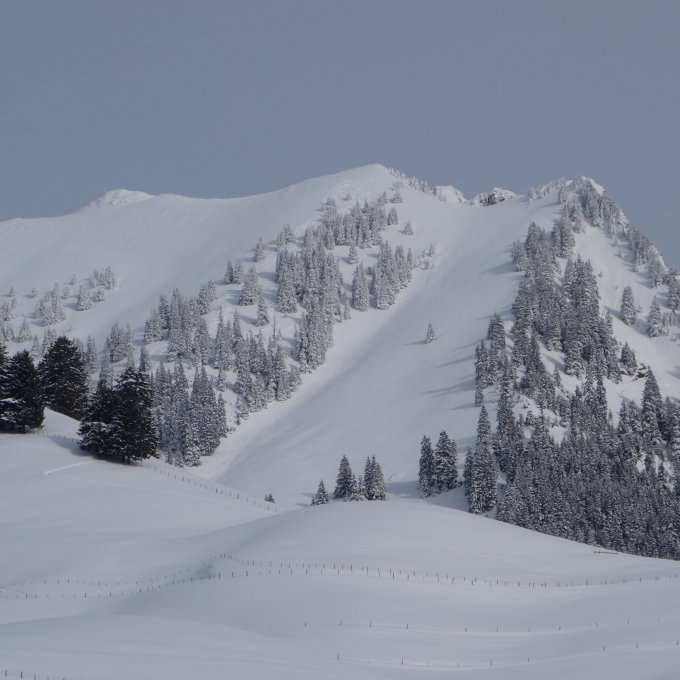 gute spur bis gipfel,grattraverse etwas abgeblasen.abfahrt in ganzen linken offenen hangteil-der oberhammer seidenfeine kanadapuder knietief.desshalb auch erstaunt das sich schon ettliche in den hang gewagt hatten.(hatte aber noch meine 30-40 m. Schneise für die fetten bretter-merci den kurzschwingern).nach alp wird's etwas knapper,strassenabfahrt z.t. mit etwas steinen gesprenkelt.abfahrt aber bis granvilard gut.