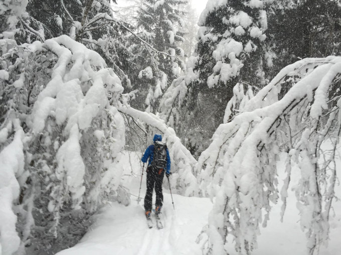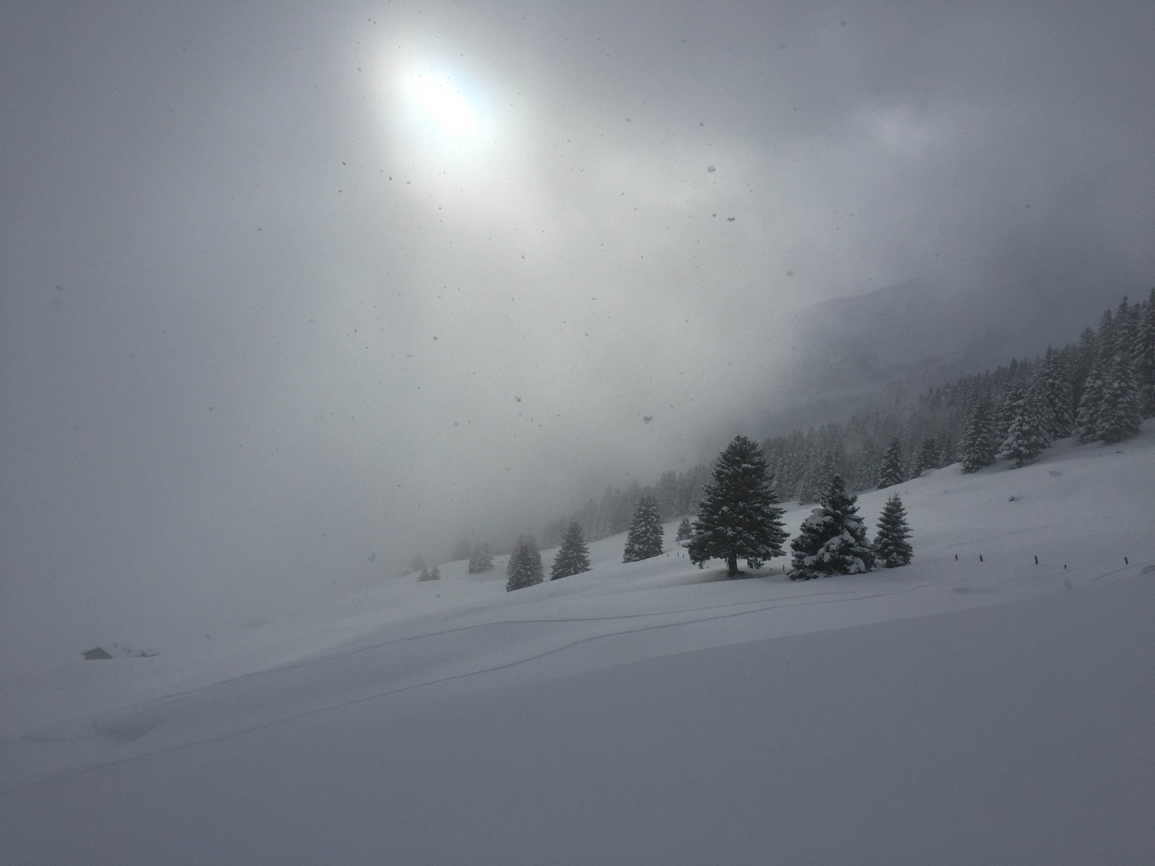 Ab Untervaz ein paar Minuten Ski tragen; Im Wald wenig Schnee, mit steigender Höhe immer mehr… Insgesamt sehr gute Verhältnisse. Leider hatten wir bei der Abfahrt keine Sicht.