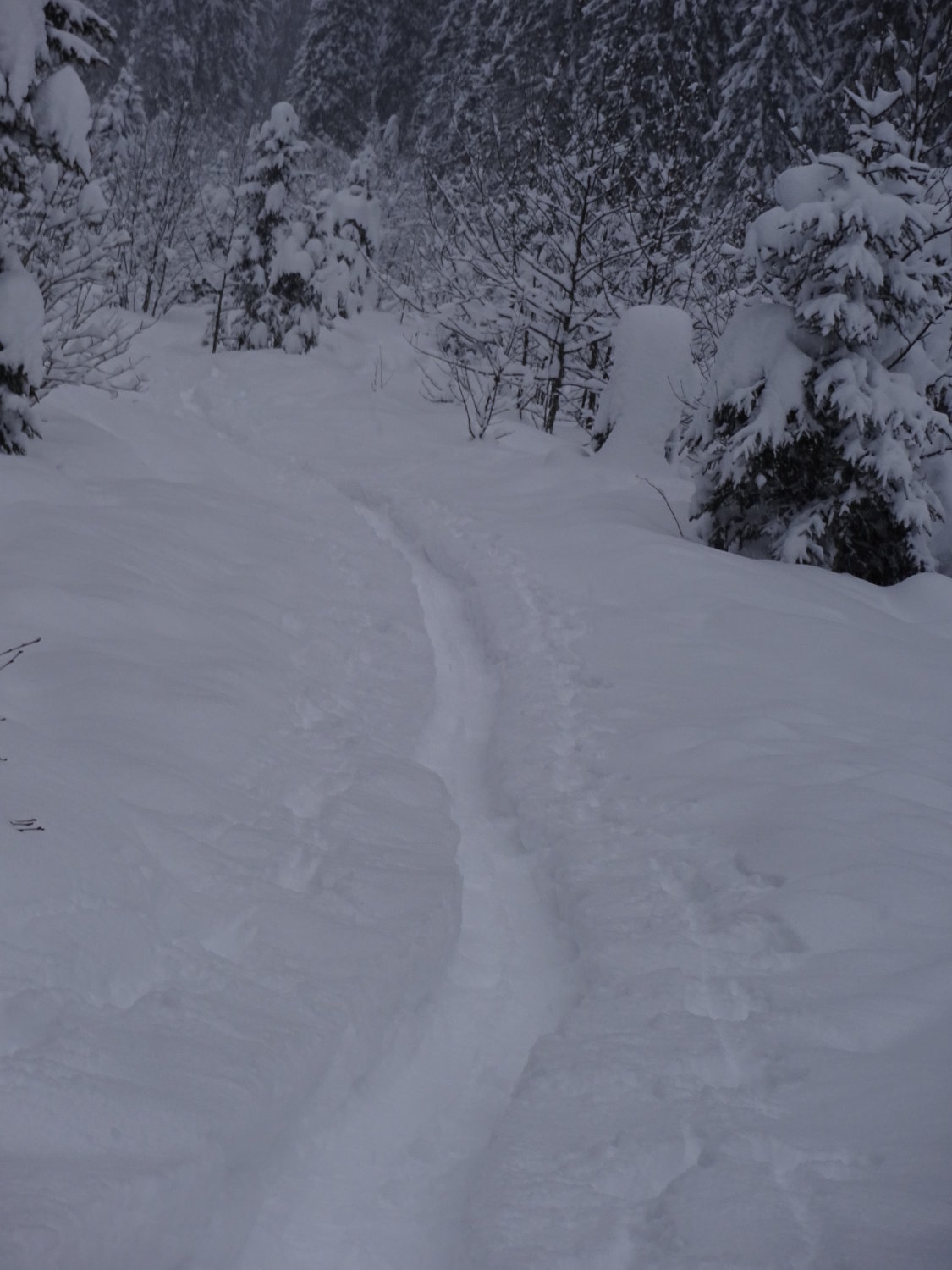 Abfahrt in Canadian-Pouder zum Teil bis Hüft-Tief. Jedoch viel zu viel für das "Flache" Raufli. Daher leider nur geradeaus fahren.. :-)