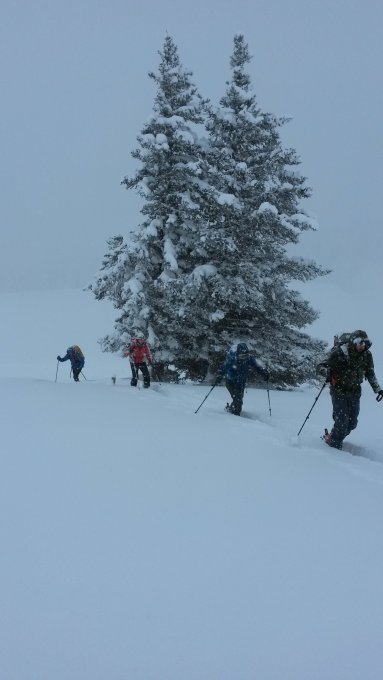 Bei leichtem Schneefall bei Gefahrenstufe Gross ab 2200m, hatten wir sehr viel Neuschnee und ab der Alp wenig Sicht und sehr windig deshalb haben wir oberhalb der Alp umgekehrt.