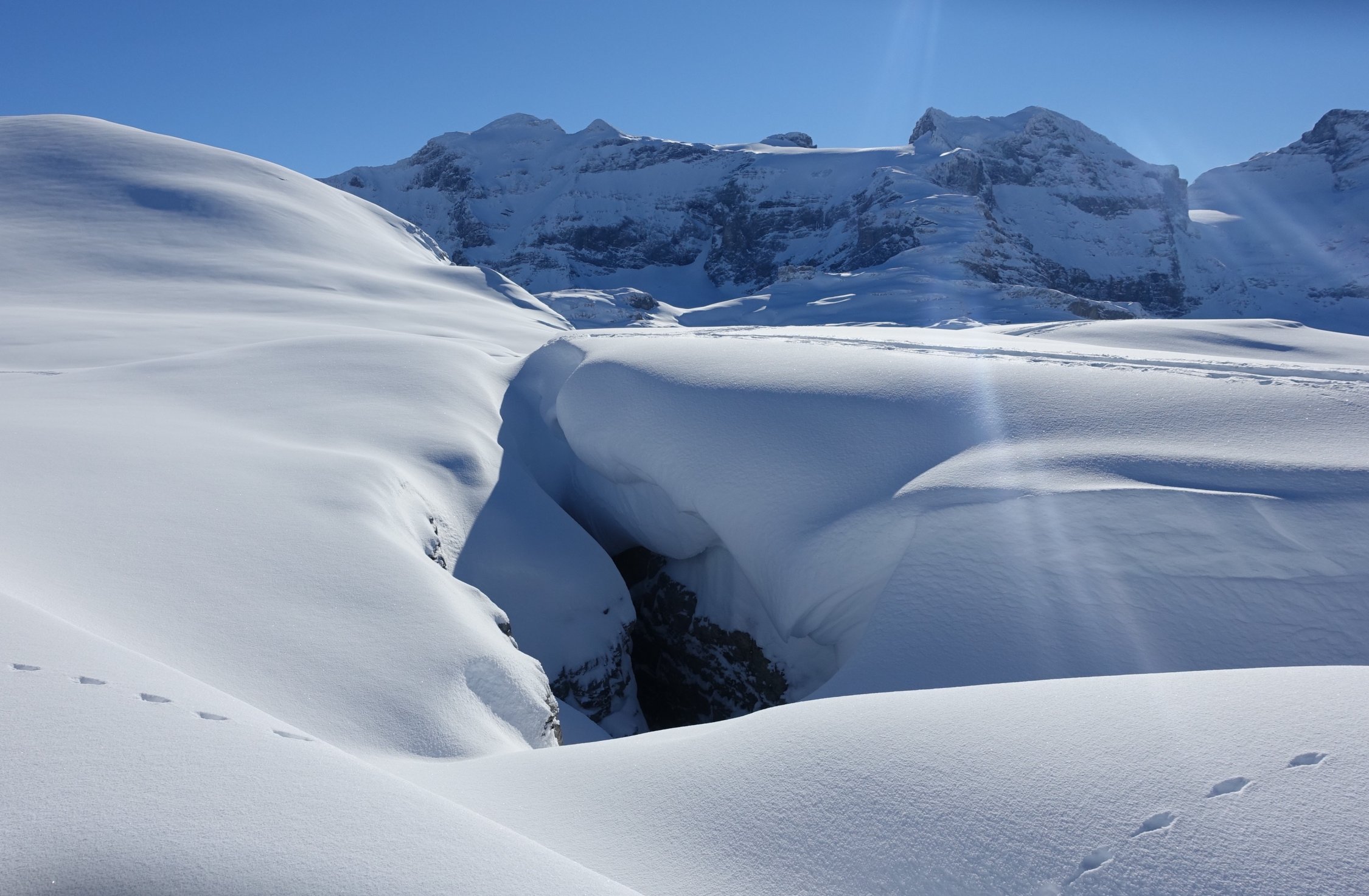 Obwohl in den Rinnen, Mulden und unter den Graten eine Menge Triebschnee liegt, keinerlei Anzeichen von Gefahr erkannt (weder Wummgeräusche, Risse und Spontanlawinen gehört/gesichtet).