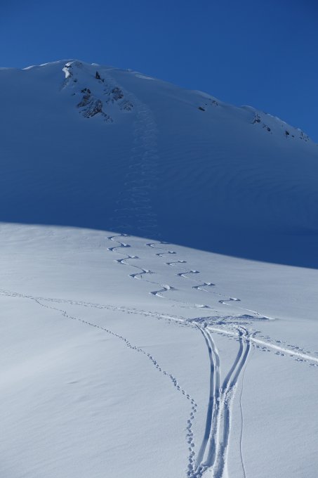 Super Verhältnisse, Pulverschnee vom Leist via Fursch bis zum Gipfel. Erstaundlicherweise waren noch keine Spuren in den Schnee gezeichnet. Begegnet sind wir maximal 10 Personen. Der Gipfelhang hat etwas eingeblasener Schnee, ist aber mit 30cm Pulver gut befahrbar.