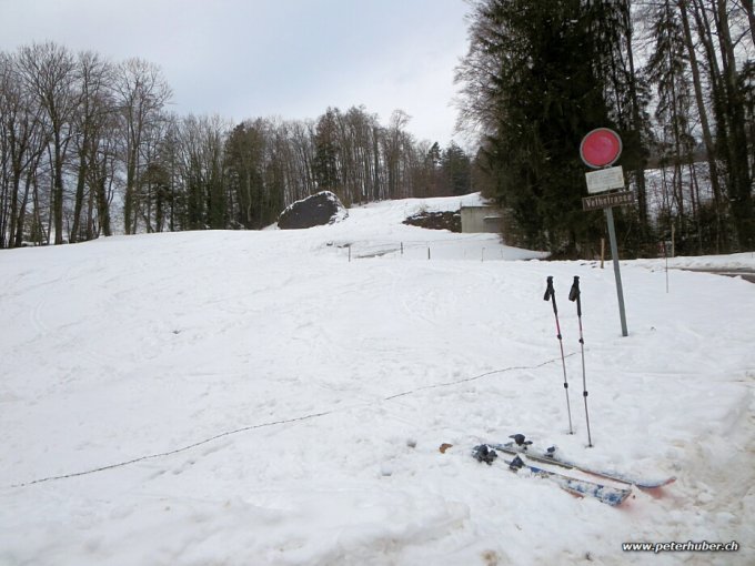 +3° im Dorf. Es hat unten zirka 10 cm feuchten gesetzten Schnee. Erst ab zirka 1100 m hats etwas mehr. Um 10 Uhr zeitweise Regen bis 1200 m, darüber neblig.