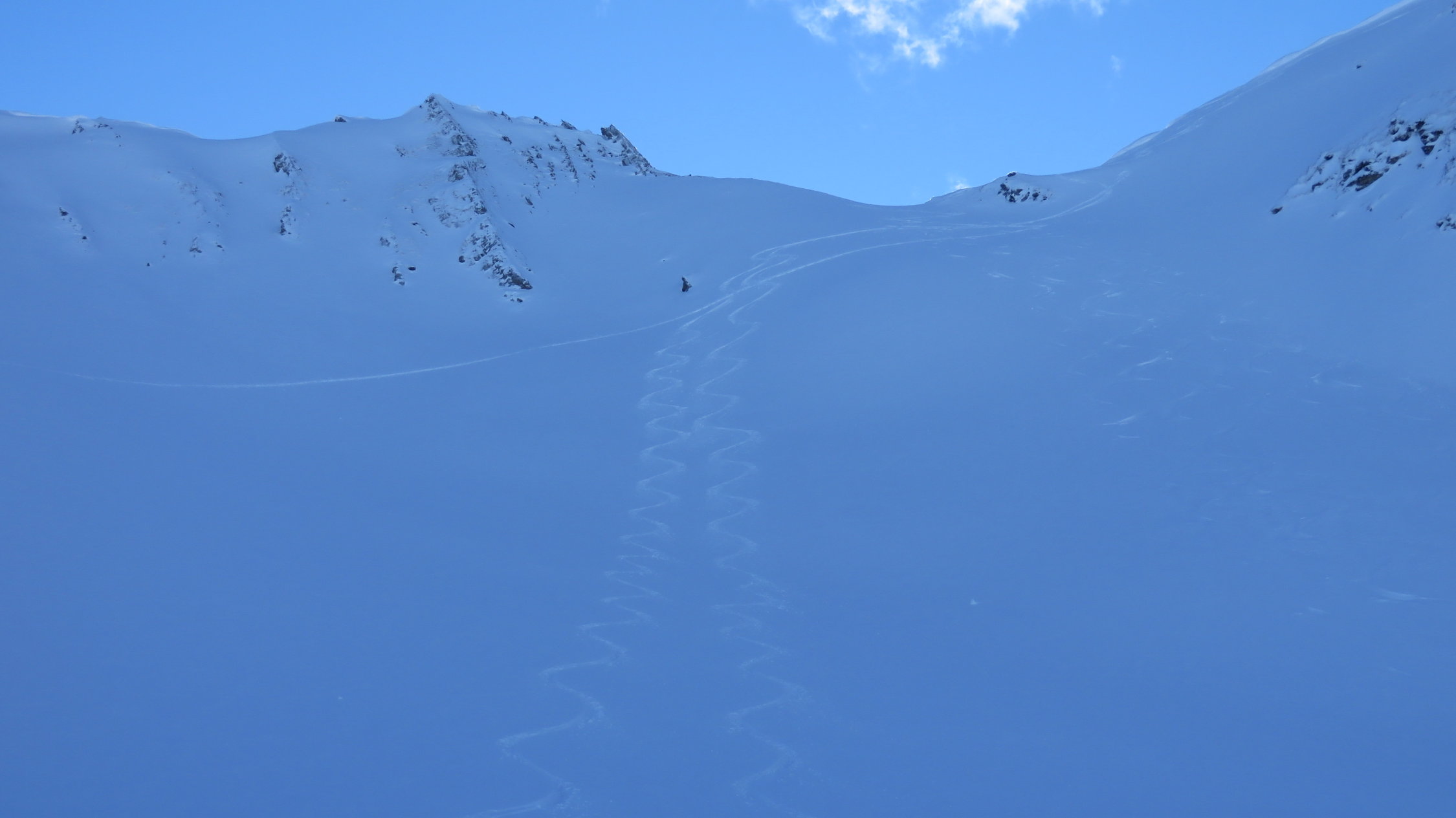 Oberhalb 1900m noch schöner Pulverschnee und der Gipfelhang war super