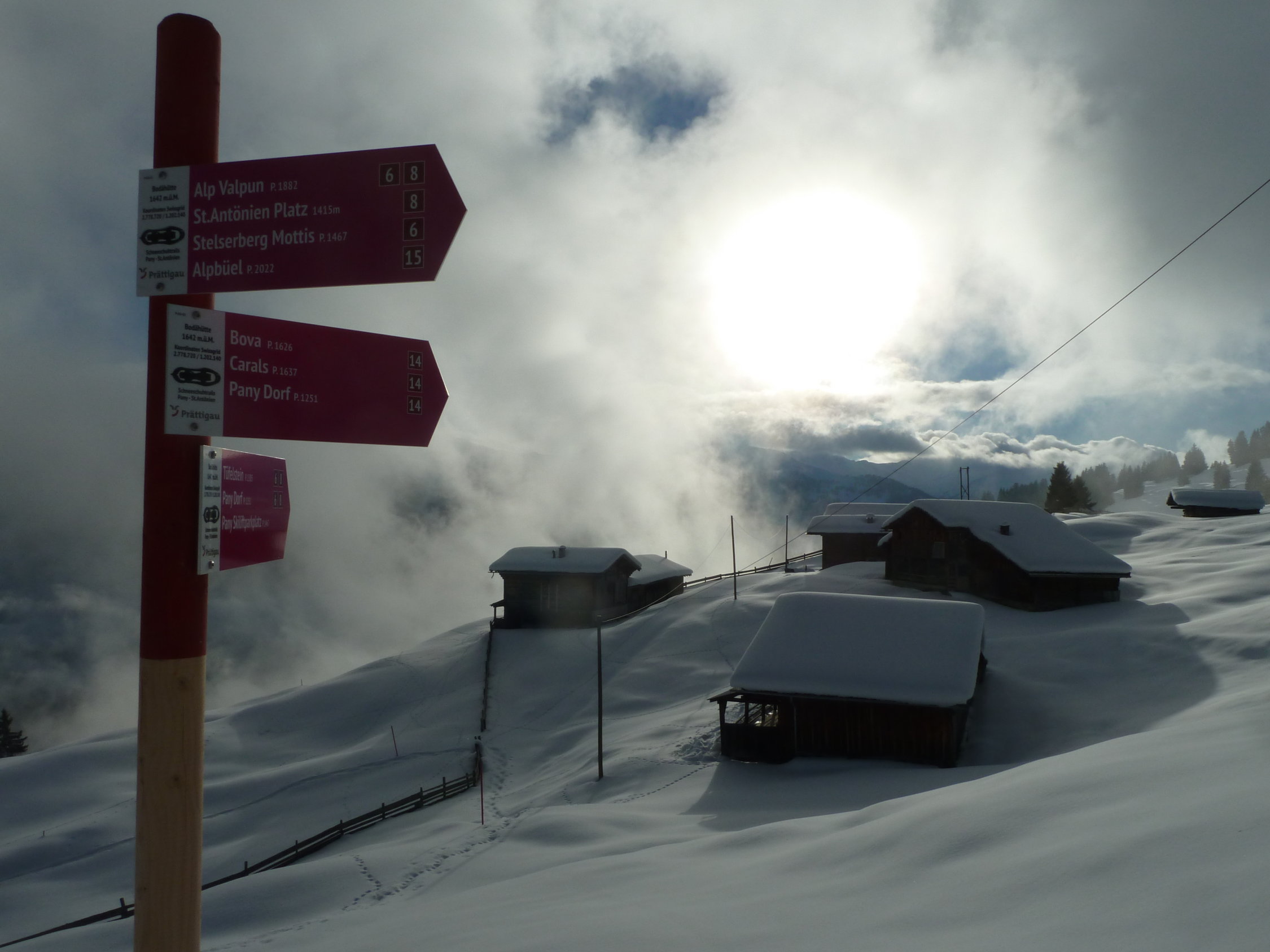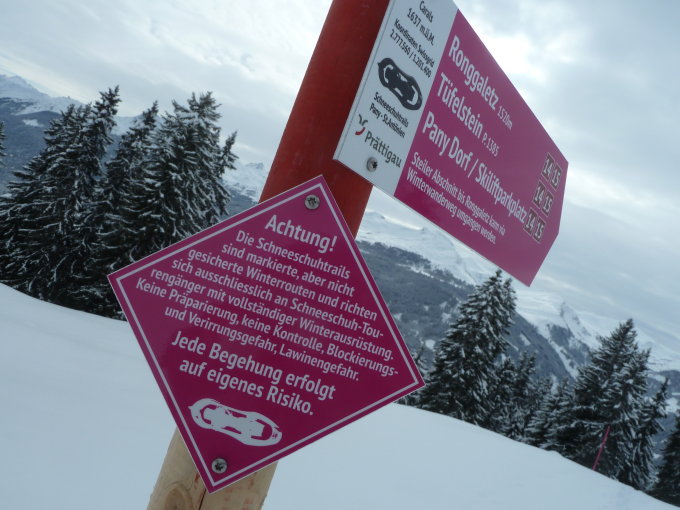 Rundtour Pany-Galondis-Bova (1724m): markierter Trail Nr.13 der 'Schneeschuh-Arena Pany-St.Antönien'