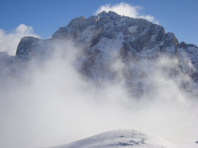 Die durchnässten Felle, brachten nun das sehr lästige Anstollen dieser mit sich. Aber damit war dann irgendwann mit zunehmendem Höhengewinn Schluss.