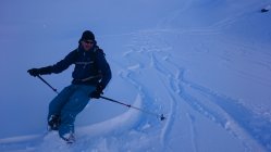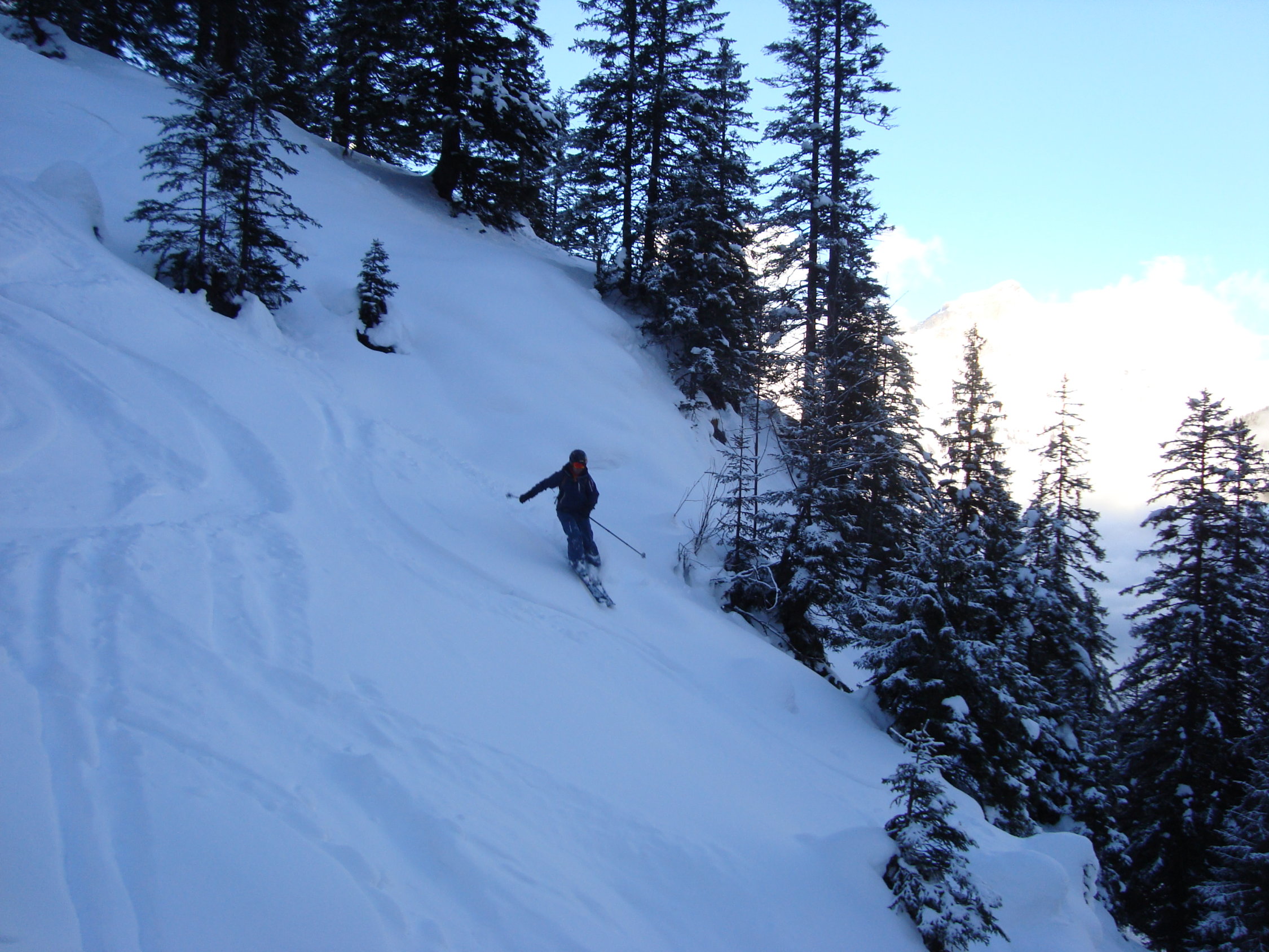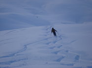 Danach durch die schattige Lage bedingt, überfrierender Nassschnee-lästiger Deckel.