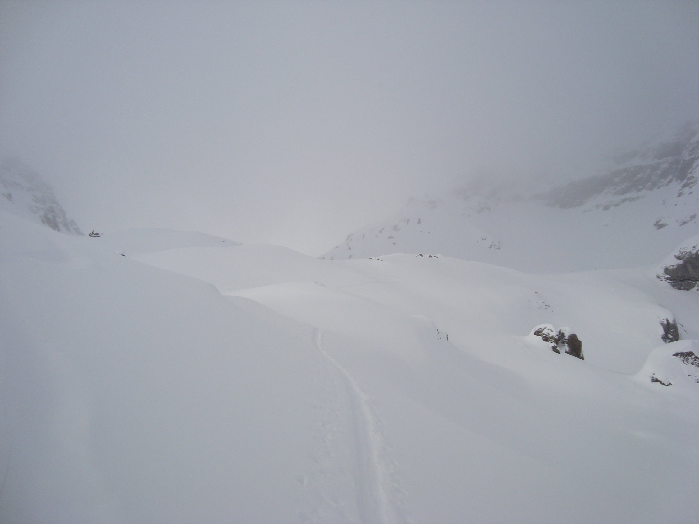Danke an die Dreiergruppe vor uns, welche bei der schlechten Sicht im Griesstal, eine nahezu optimale Aufstiegsspur gelegt hat!