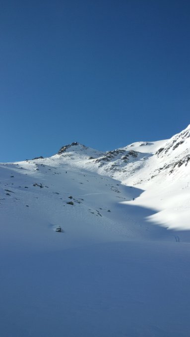 Von 1900 m bis 2200 m wenig Schnee. Dann bis zur Vallungscharte (2600 m) genug Scnnee ,der aber nicht gesetzt ist und man bricht teilweise bis zum Boden durch. Von der Vallungscharte bis zum Gipfel wenig Schnee, da vom Winde verblasen. Alles in allem keine guten Verhältnisse und eine ziehmlich angespannte Lawinensituation.Im Rojental sind derzeit auf den südseitigen Skitouren bessere Verhältnisse als auf den nordseitigen, da hier der Windeinfluss nicht so stark war.