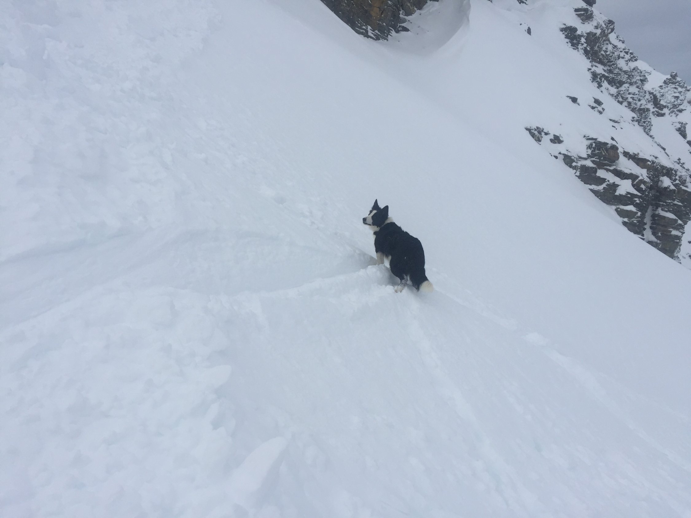 Grosses Schneebrett zwischen Landvogtehore und Gsür. Das sich wohl heute Morgen gelöst haben muss. Ausläufer gingen bis in den Sattel auf 2359 hinunter.