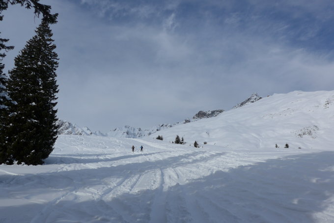 Wir sind nicht von Büel, sondern von Steinibach los. Das ging sehr gut, weil die Strasse bei Aufstieg und Abfahrt komplett schneebedeckt war. Bei den derzeitigen Strassenverhältnissen brauchts ab Steinibach 4WD oder Ketten.