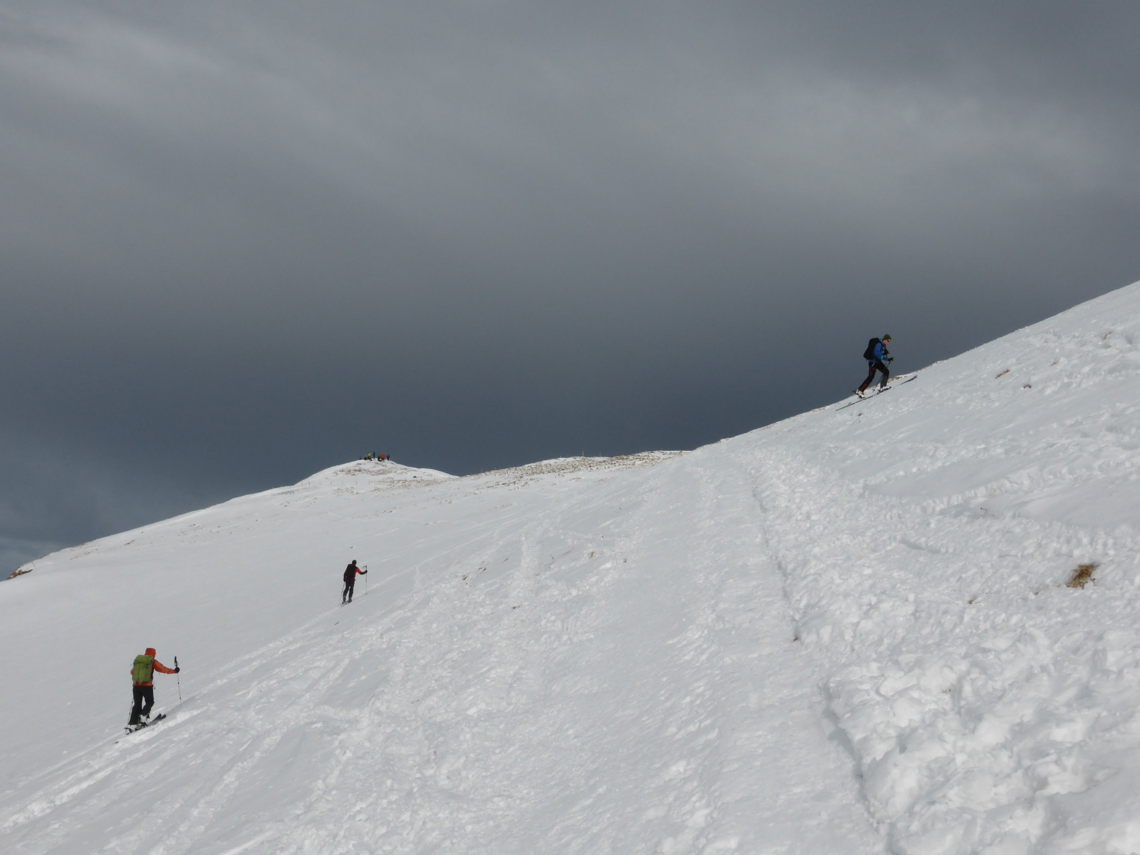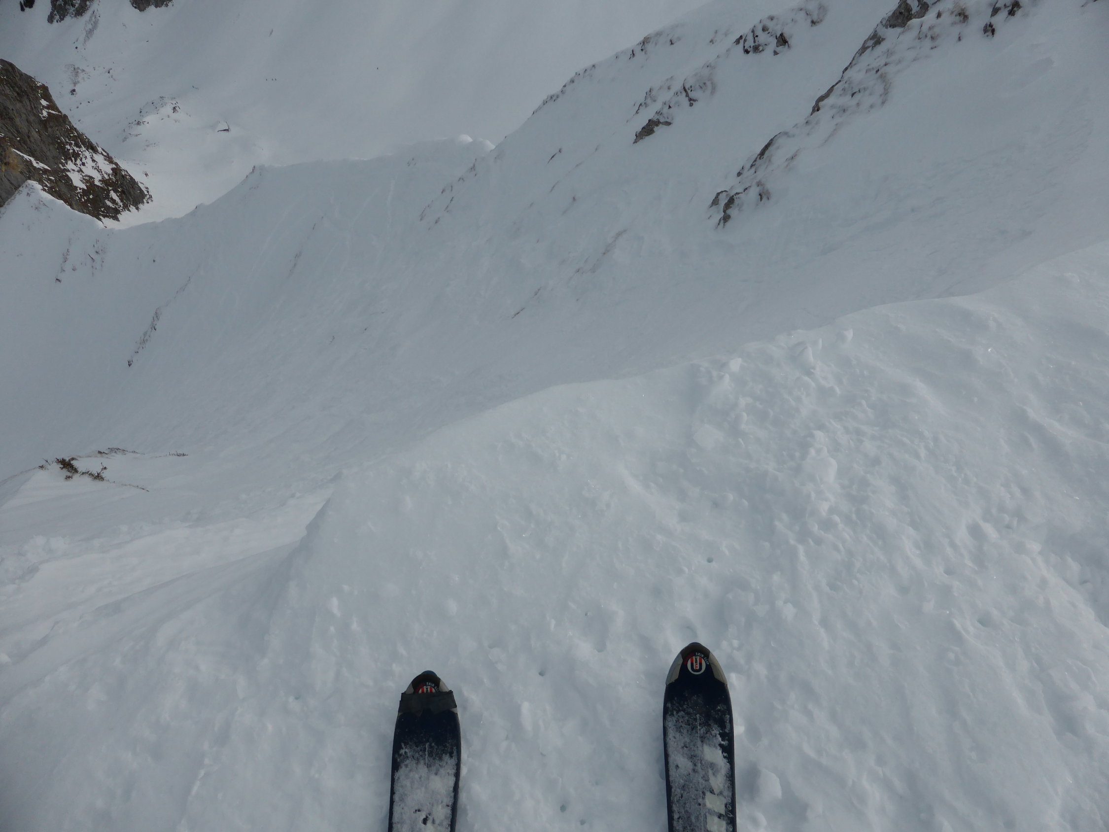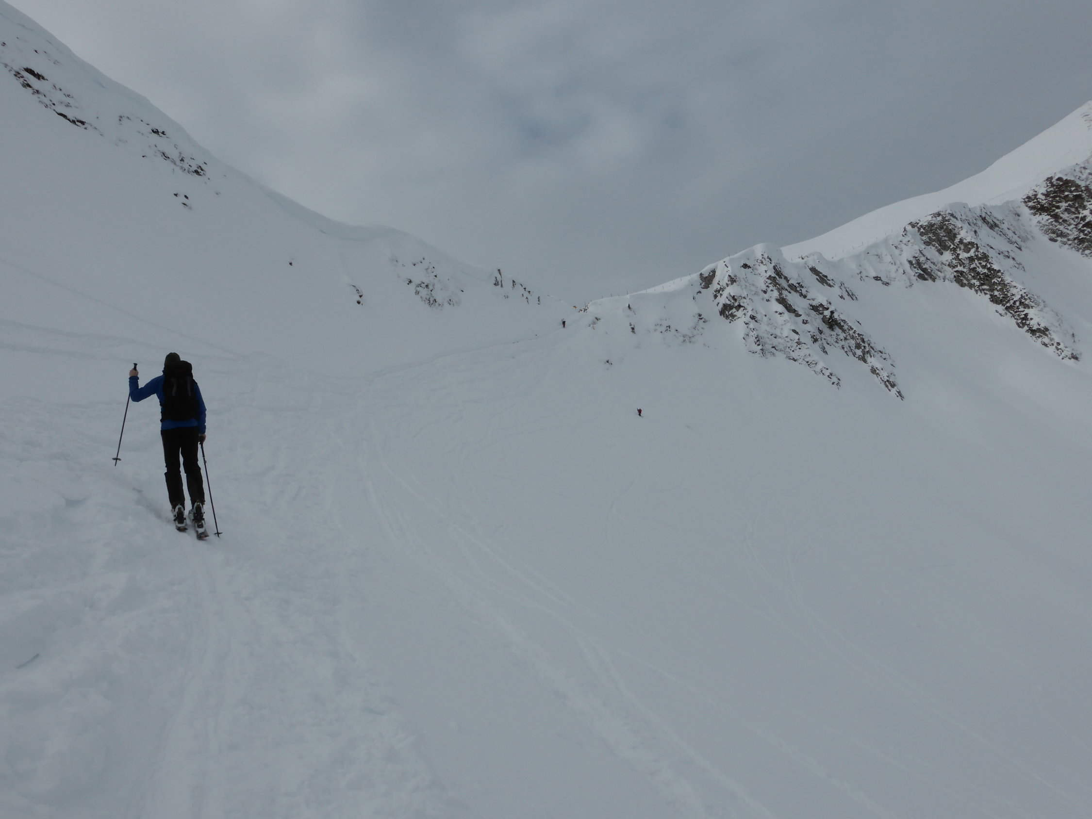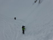 Leider hat es Freitagnacht bis zum Gipfel geregnet. Folglich Bruchharsch der unangenehmsten Art. Desshalb auf Abfahrt durch die Nordflanke verzichtet.