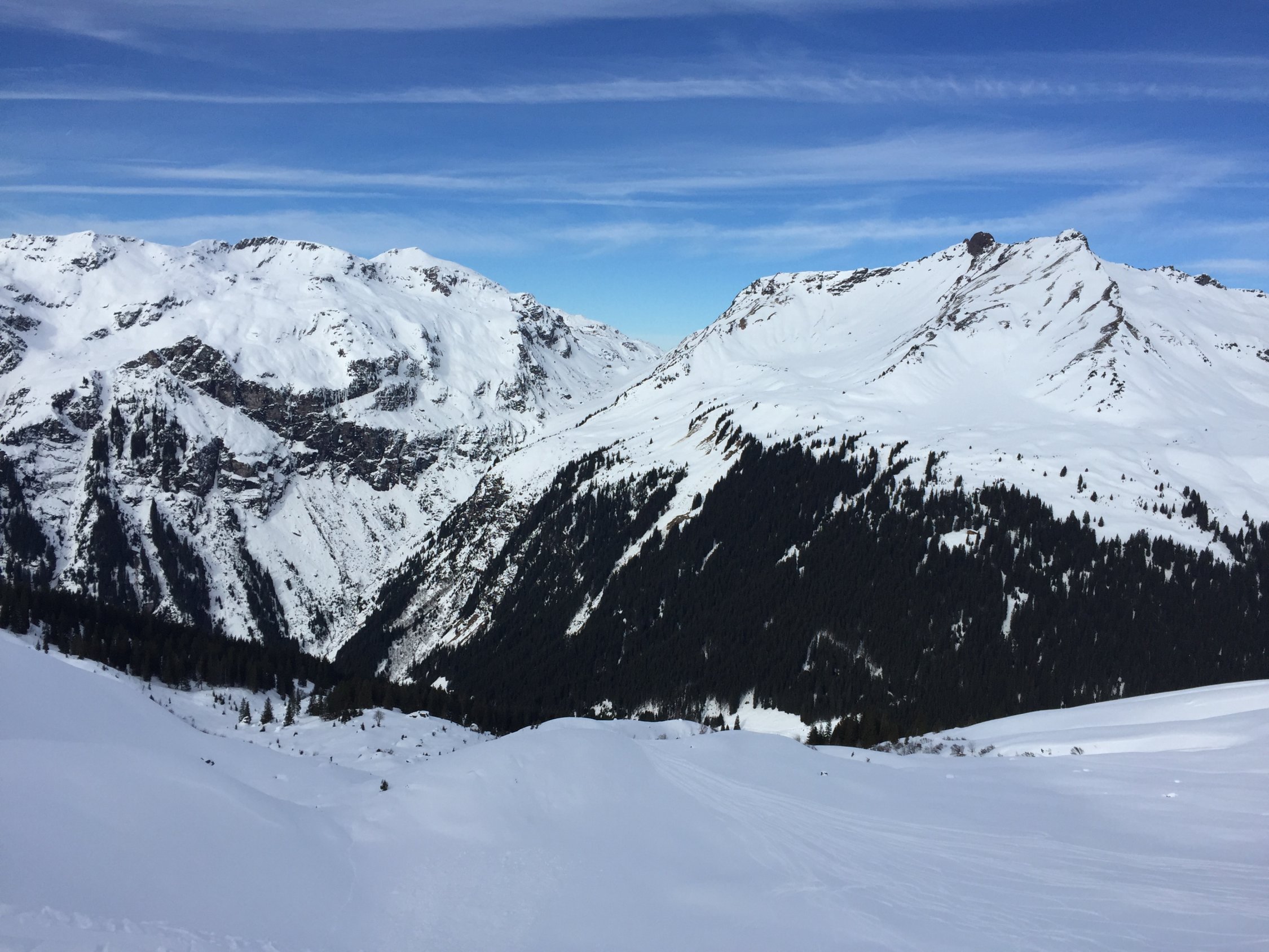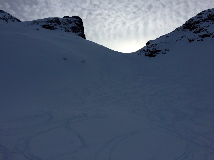 Abfahrt nach Engi über Mülibachtal: oben etw windverpresst, dann pulvrig, dann nass-sulzig