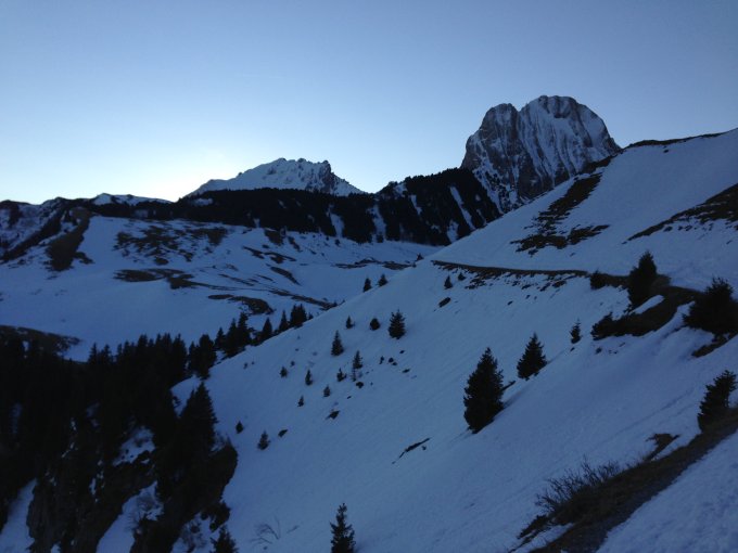 Schönes Wetter aber windig. Genügend Schnee von der Wasserscheide. Kurze Tragstrecke durch den Wald. Harter, tragfähiger Deckel (gestriger Regen). Gegen den Gipfel zunehmend eisig und etwas Bruchharst. Nach dem Wald ist ein grosser Nassschneerutsch heruntergekommen (siehe Foto). Im steilen Gipfelaufstieg sind Harscheisen zu empfehlen. Der Grat auf den Gustispitz gut ausgetreten und gut zu klettern. Wunderschönes Panorama bei guter Fernsicht.
