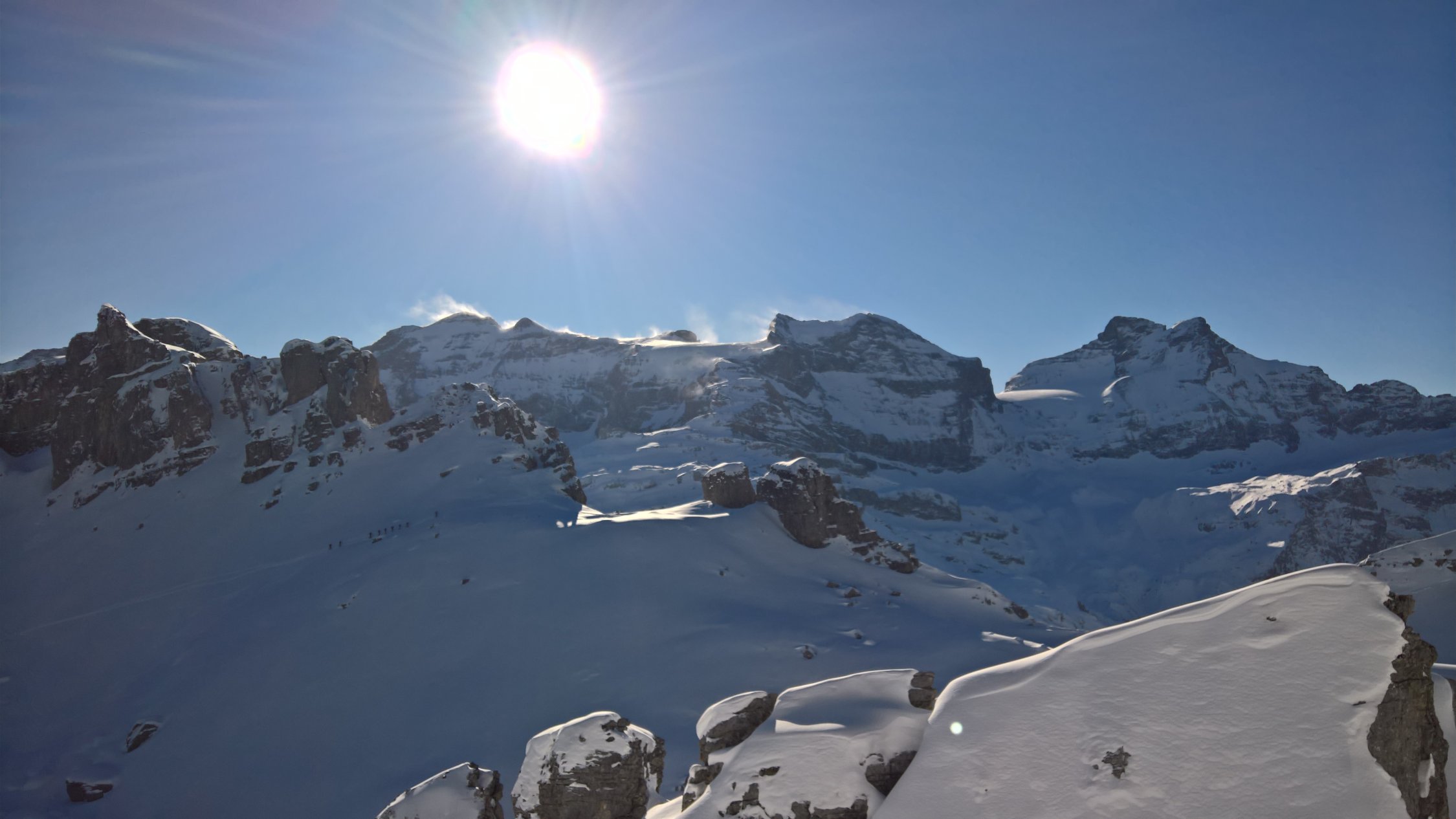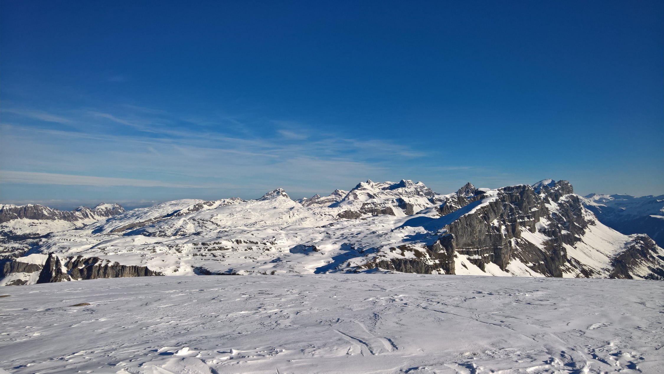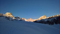 Abfahrt vom Glatten bis zur Ersten Chälen und kleiner Aufstieg zum Pkt. 2437. Abfahrt Richtung Chli Glatten zur Wächters Butzen. Nun wurden die Felle wieder montiert und es ging hoch zum Rau Stöckli. Die Abfahrt erfolgte im besten Pulverschnee bis zum Ober Stafel. Nachfolgend auf harter Unterlage ins Sali.