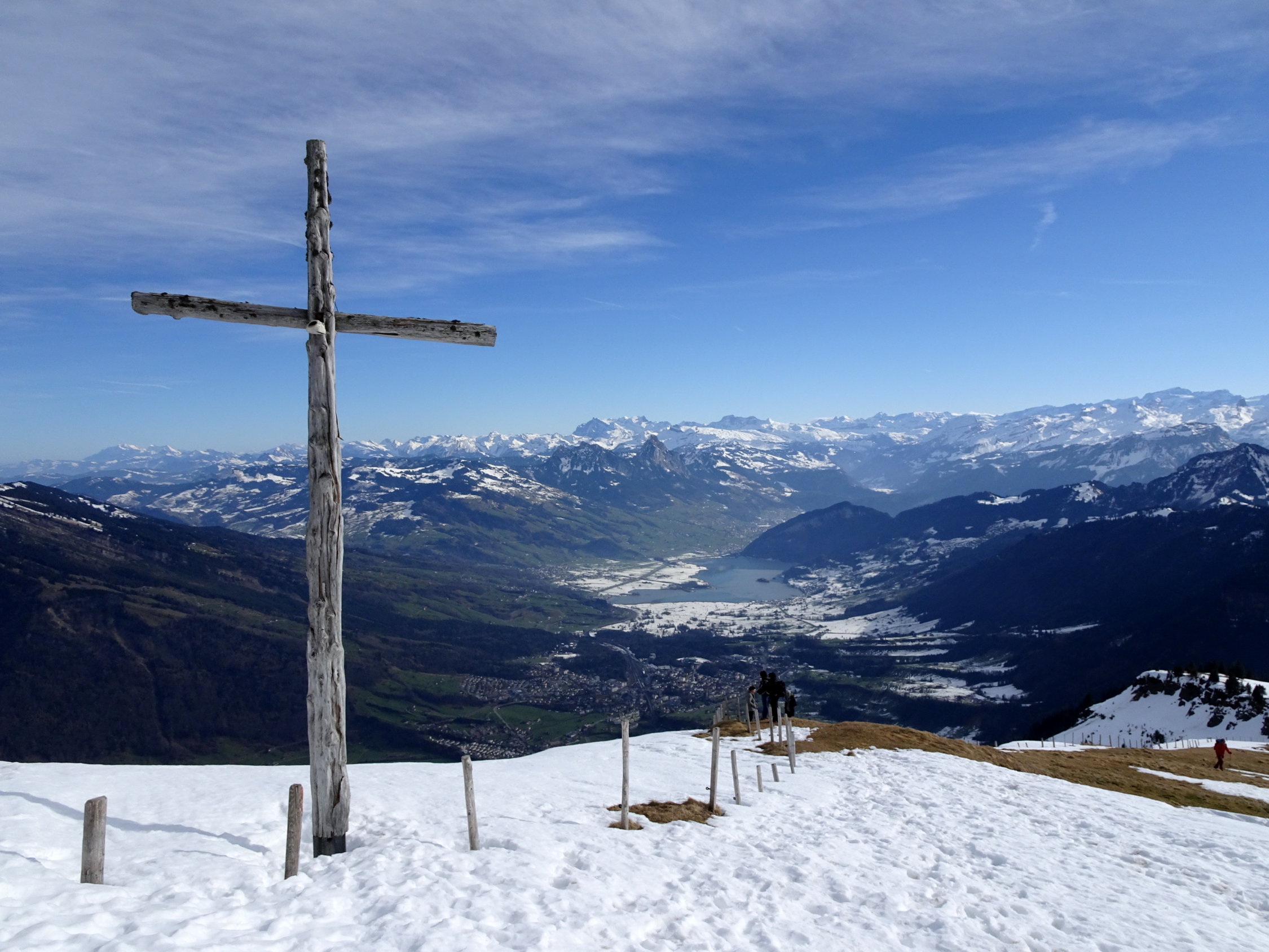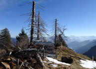 Noch etwas zur Tour: abgesehen vom ersten Stück auf Betonstrasse,angenehmer Aufstieg im Wald, dann schöne, offene Hänge die allmählich der Blick auf ein wunderbares Panorama ermöglichen. Ist man auf dem Gipfel, kann man sich nicht sattsehen: Man kann sich um die eigene Achse drehen und hat immer wieder neue, wunderschöne Ausblicke.