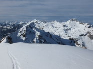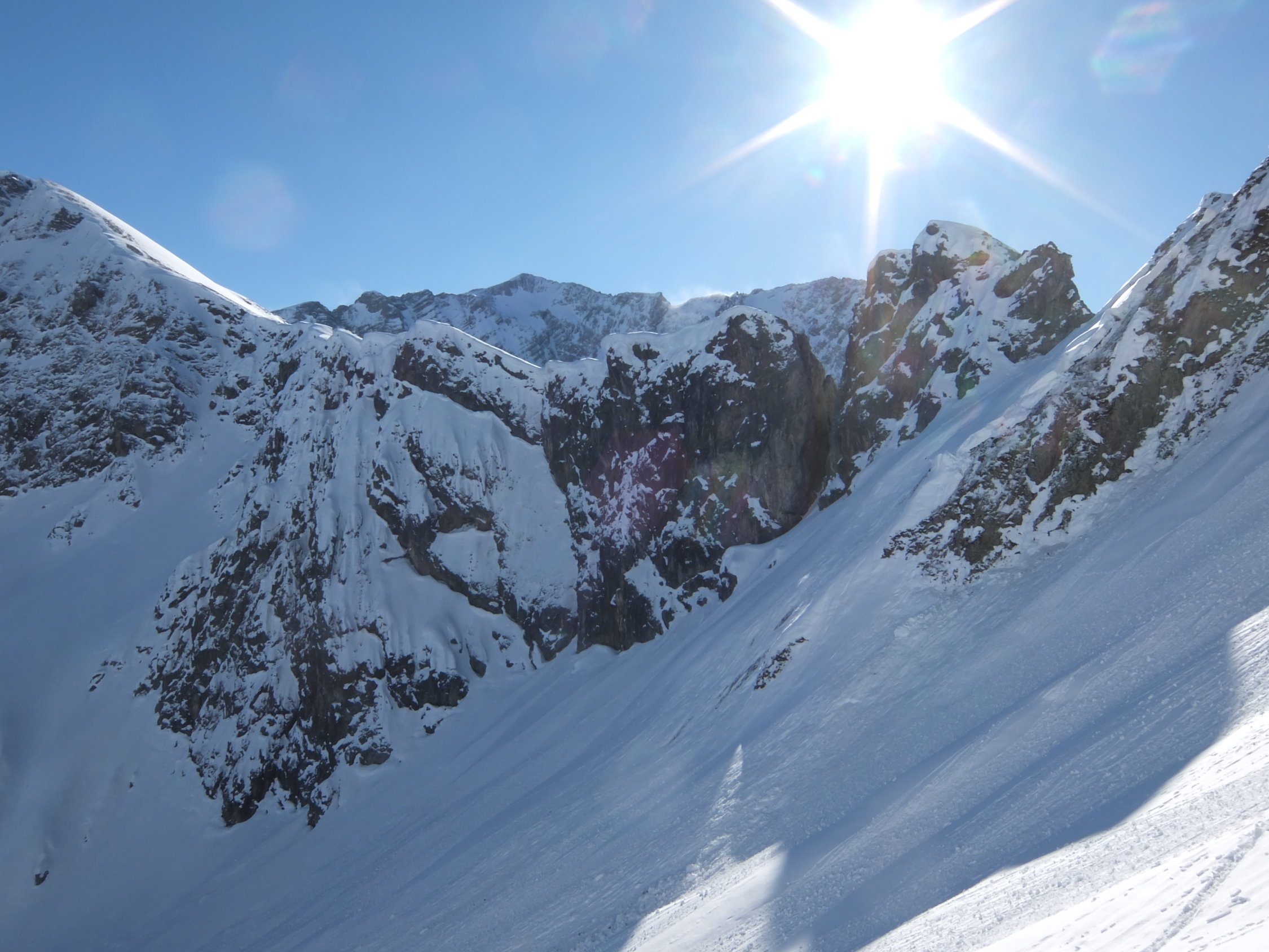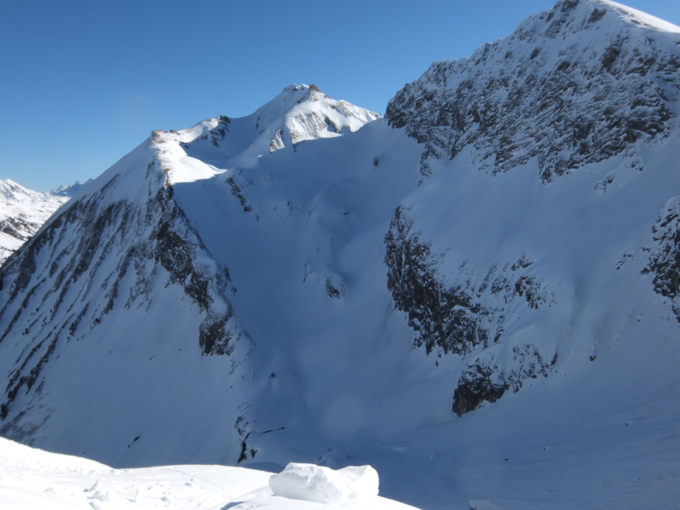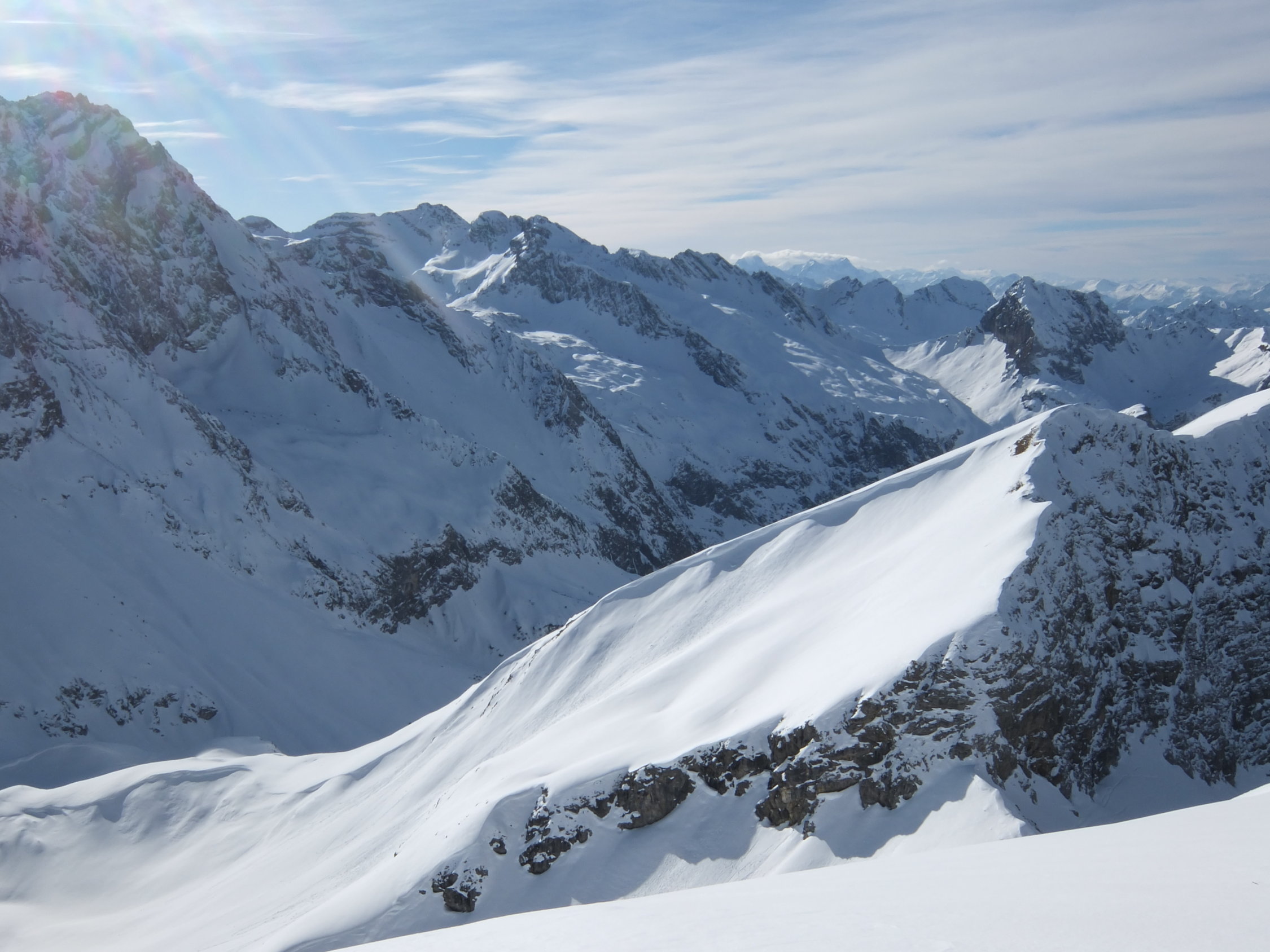 Super Abfahrt bis in den Karboden. Aufstieg über das Schafalpjoch Richtung Hochberg. Abbruch an einem 5m-Abbruch auf einem der Vorgipfel. Der Weiterweg wäre möglich gewesen, jedoch skitechnisch nicht interessant.