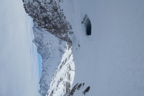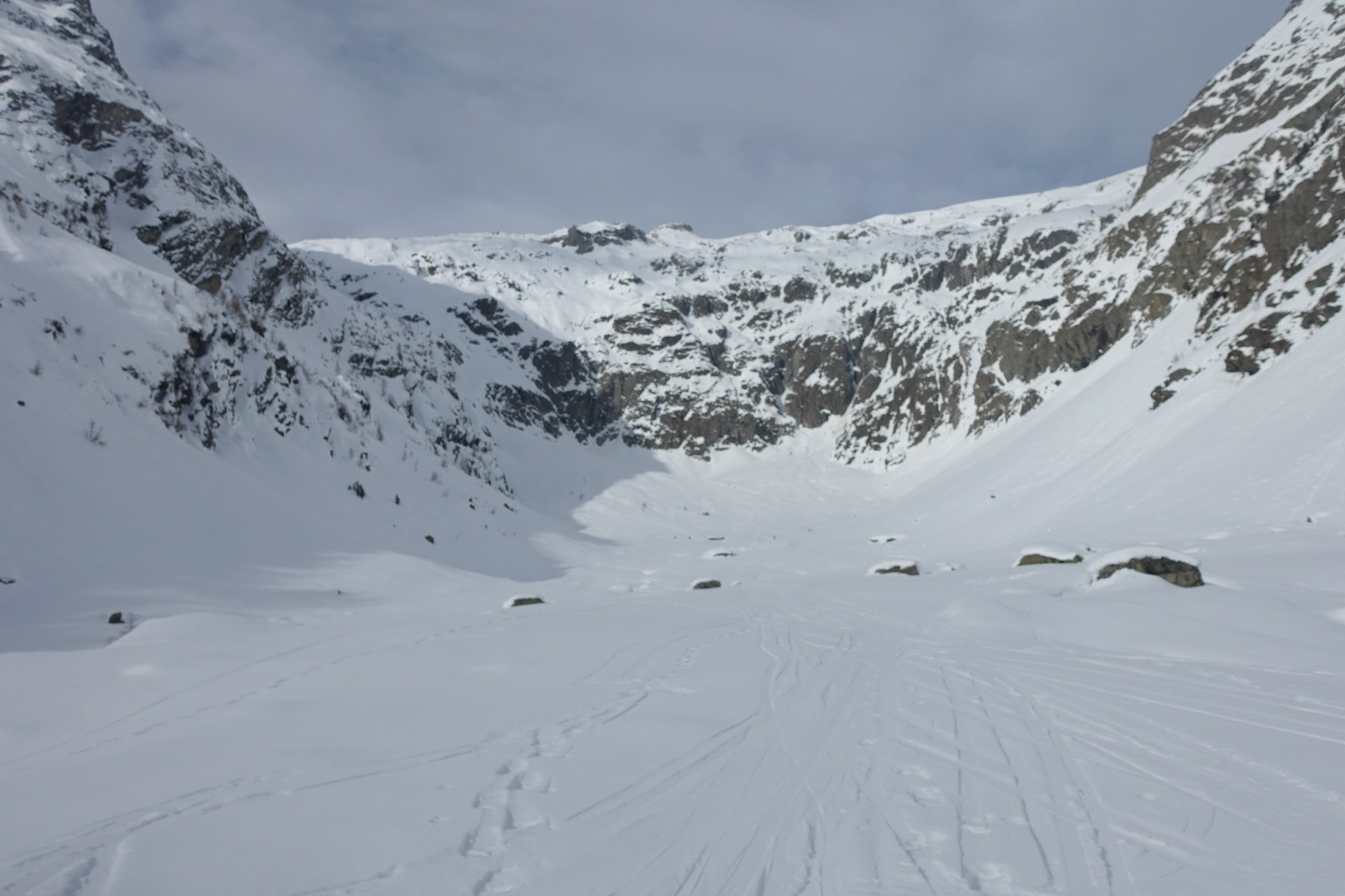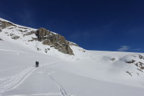 Sind Lauchernalp gestartet um Tour etwas zu strecken.Ab Normalquerung von Bahn her gute Spur bis Grat,Gipfelhang durchgängig im harten Schnee gehbar.Aufstieg windstill und Grandbleu,nur Gipfelbereich windig.Abfahrt von Gipfel hart gut,Hang bis Tennbachhorn(sehr links) Pulfer mit Wind-oder Harstdeckel nicht schlecht fahrbar,Tellin hart gut griffig bis Presspulfer.