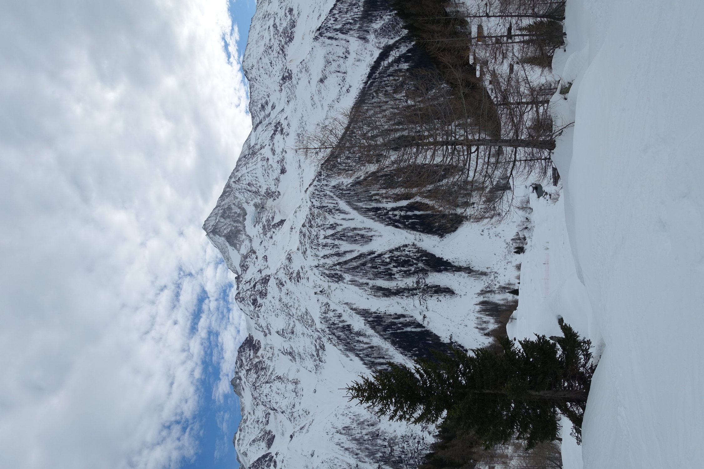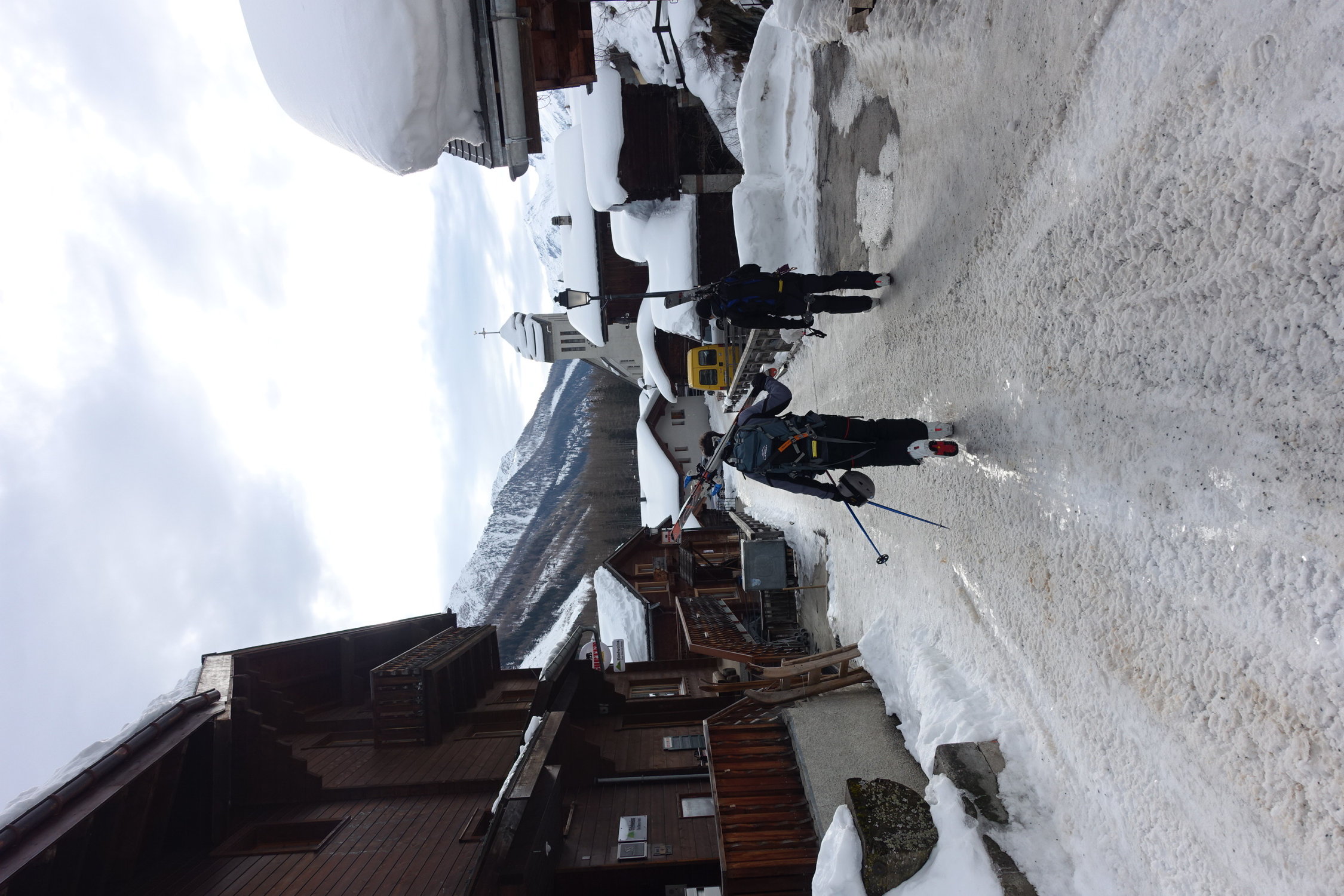 Neu kann ab Alp Tellin wieder rechts von Bach nach Blatten abgefahren werden(links immer noch Wildschutz)-Schnee reicht knapp bis vor Dorf.