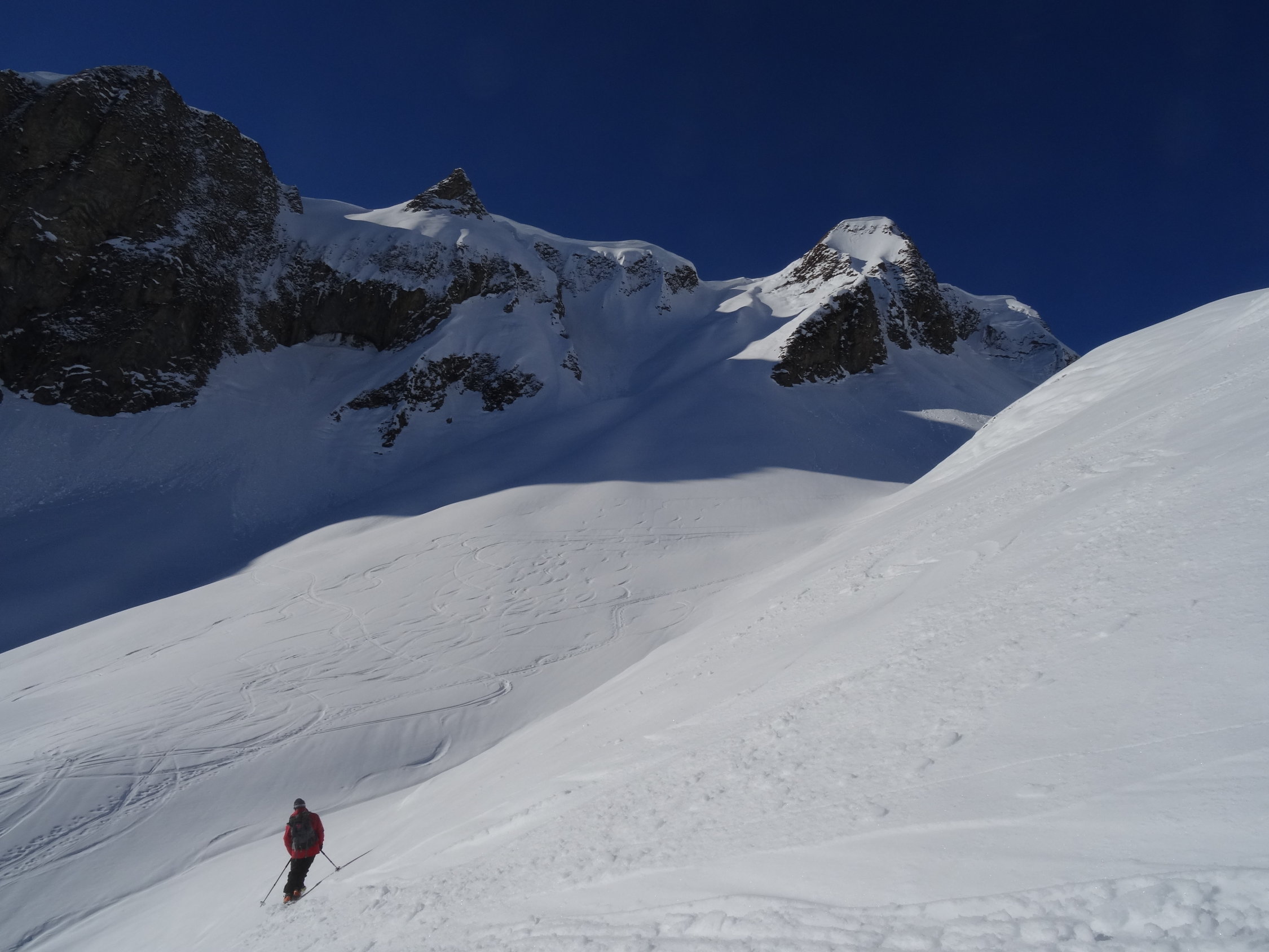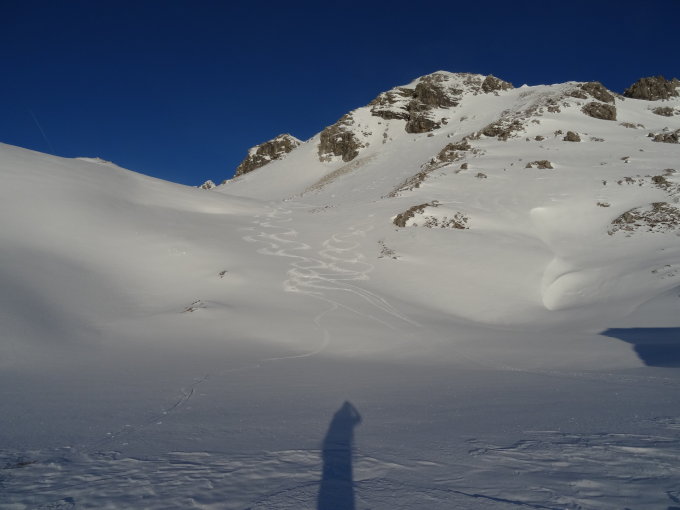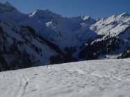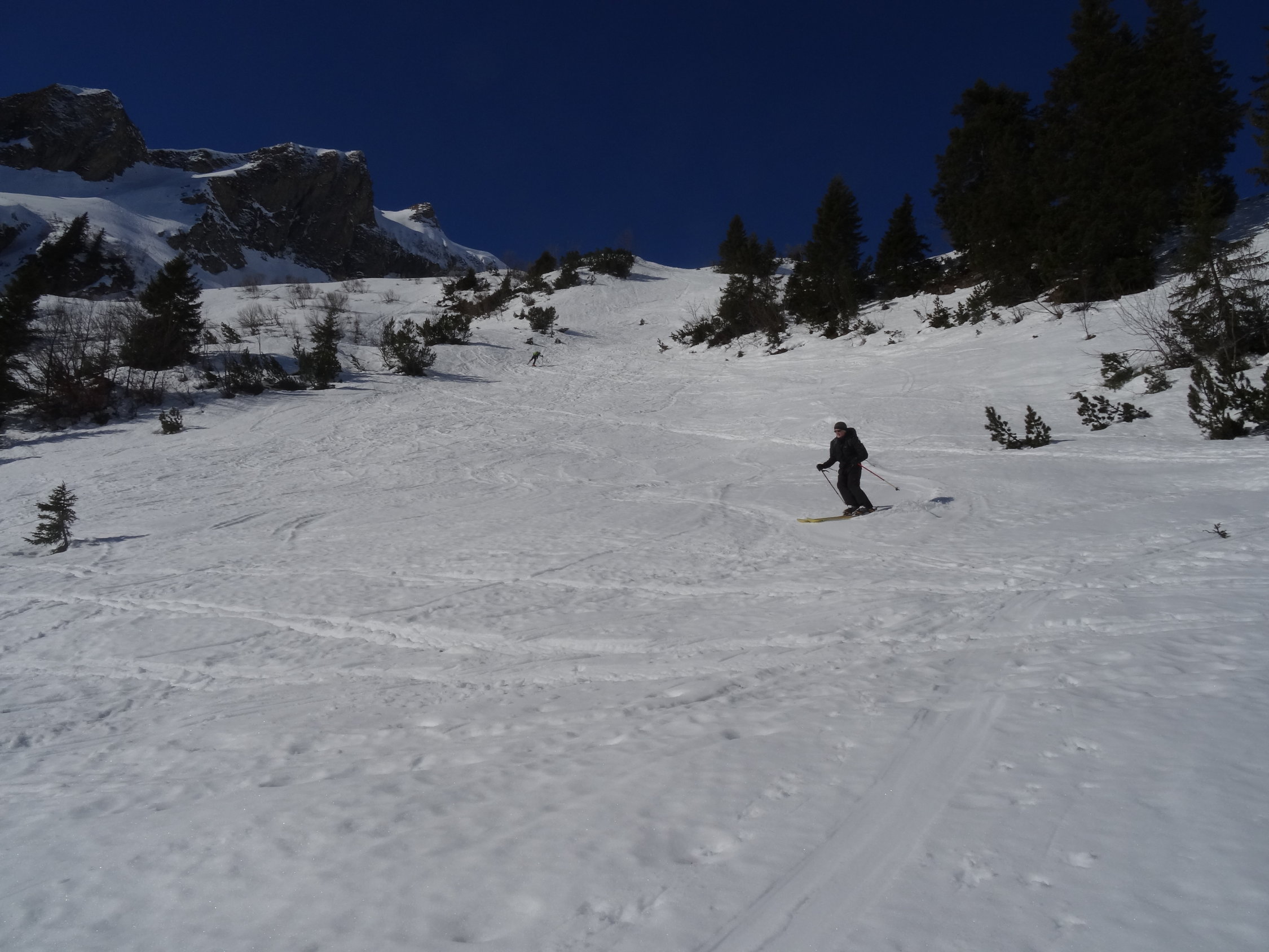 Bei der Abfahrt zum Giebelhaus oben noch recht hart, dann prima Firn im unteren Bereich (keine Sonneneinstrahlung) hart und verfahren