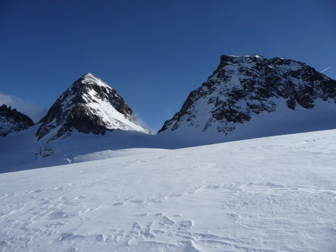 Wenig, aber durchgängig ausreichend Schnee. Bis zum Gletscherbruch unschwierig, danach Spalten gut sicht- und umgehbar, auf dem Weg des aufgezeichneten Tracks nirgends eingebrochen. An dem Punkt ab dem der Track vollständig mitgeschrieben wurde erste nennenswerte Spalte, deren Übergang man auch bei der Abfahrt wieder finden sollte. Kurz oberhalb der Buinlücke wegen Kondition, Tageszeit, schlechter werdender Sicht, aber vorallem Bedenken wegen Triebschnee im unteren Teil des Gipfelhangs abgebrochen. Abfahrt entlang des Aufstiegs auf ständig wechselnder Unterlage (Pulver, Windgepresst, leichter Harschdeckel, abgeblasen) für den aktuellen Winter dennoch garnicht schlecht.