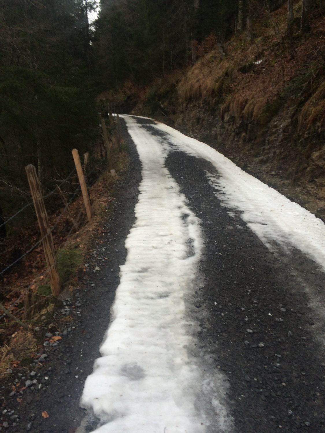 Heute war ich der einzige Tourengänger im Gebiet (ist ja selten genug). Erwartungsgemäss entsprechend den Vorhersagen sehr warm (10 Grad in Weglosen). Ski konnten gerade noch so am Parkplatz angelegt werden. Auf der Fahrstrasse z.T. längere Tragepassagen. Alles sehr nass und der schöne Schnee lief in zahlreichen Bächen ins Tal hinab. Insgesamt sehr frühlingshaft, nur eben, dass es gar keine Unterlage hat und der Schnee einfach wieder weg ist. Ab etwa 1400 m durchgehende Schneedecke bis zum Gipfel und ohne Abschnallen war es gerade noch möglich hinauf zu kommen. Der Schnee war bis oben sehr nass und weich.
