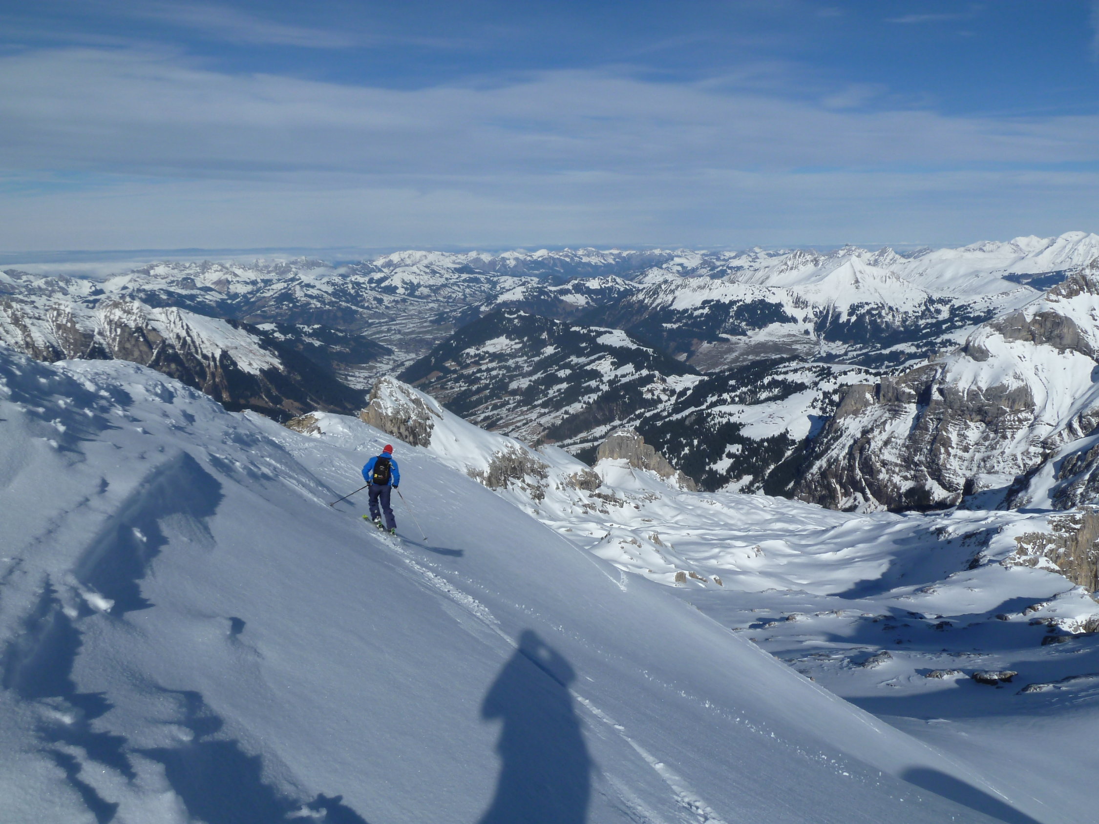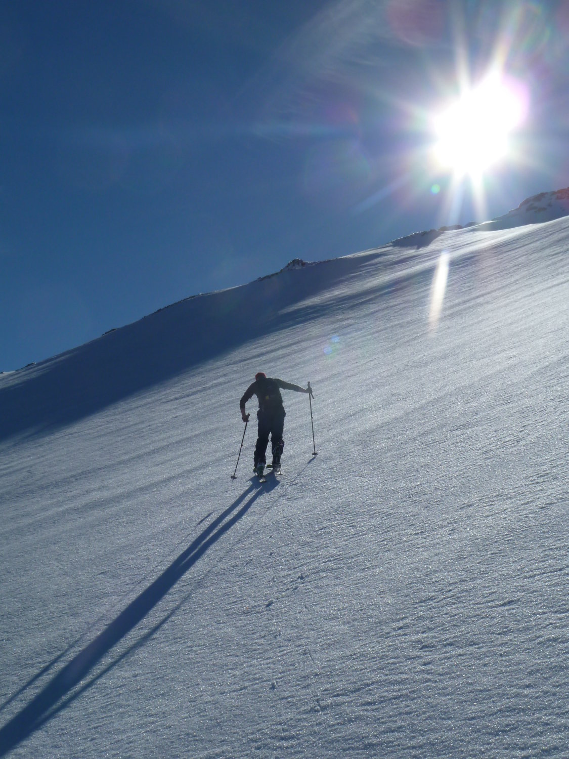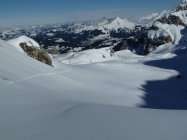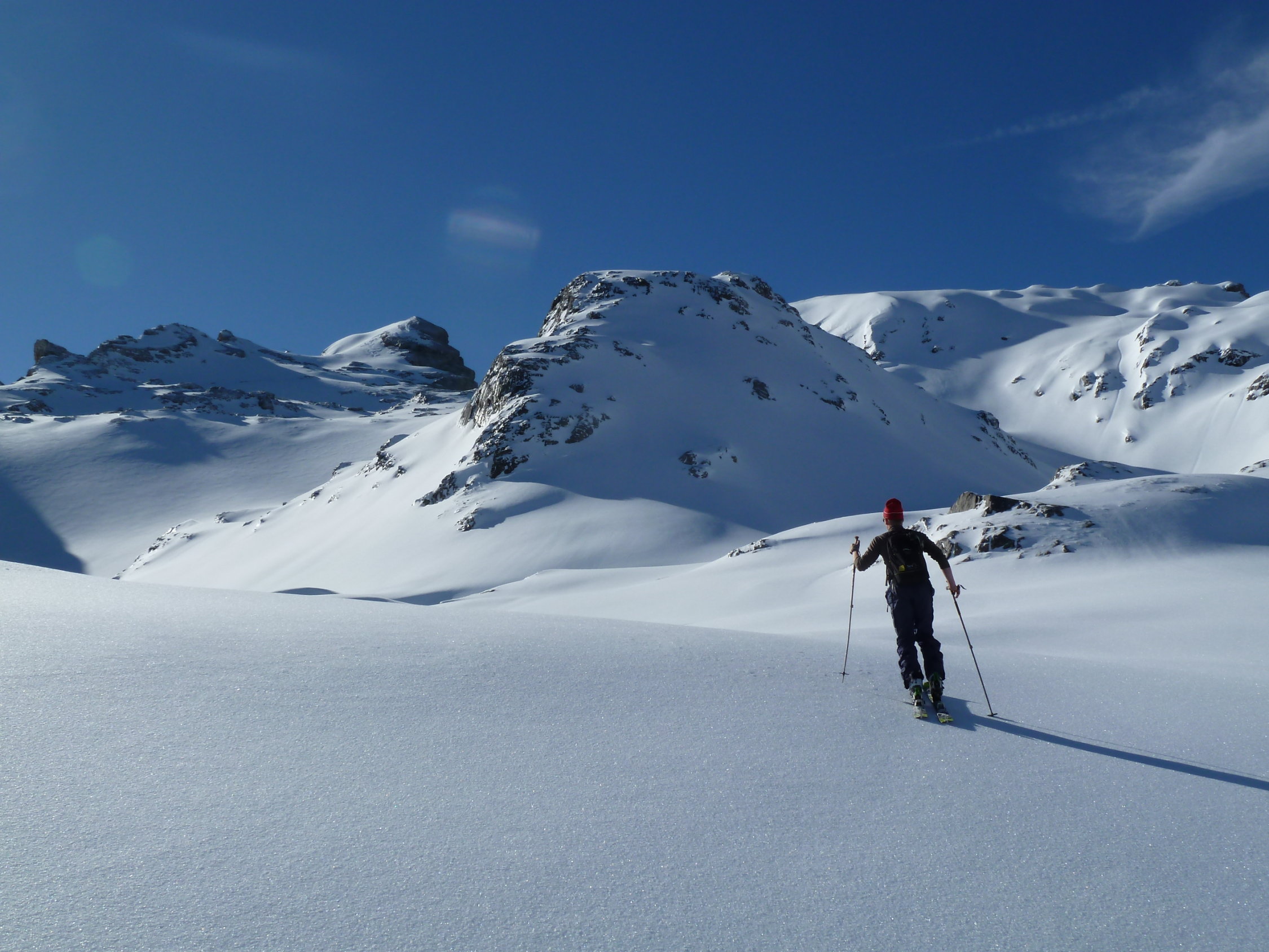 Tolle Skitour in einsamer Umgebung (und heute ohne lästigen Helifluglärm) mit rassiger Abfahrt und herrlicher Aussicht auf die umliegenden Gipfel.