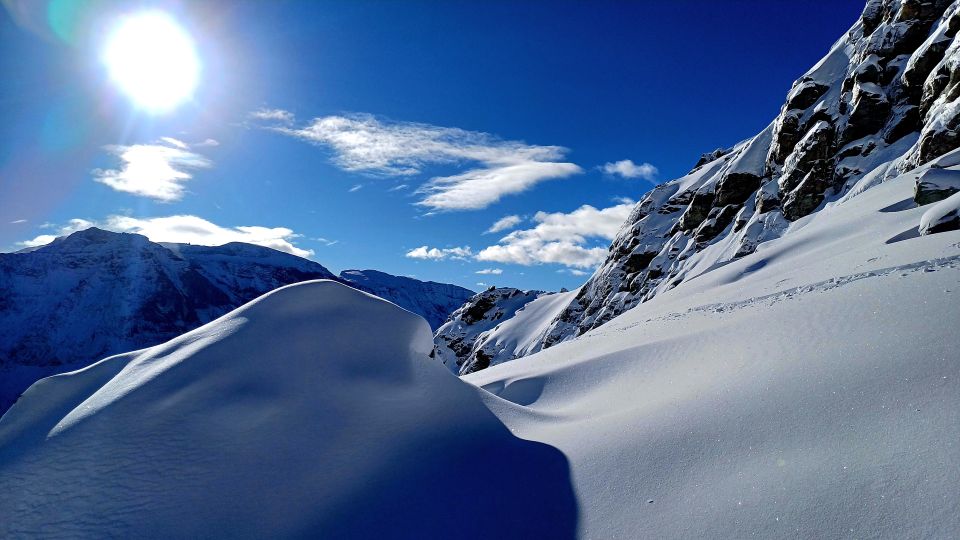 Mit dem Bike bis Skihütte Obererbs. Wenig Neuschnee ohne unterlage bis 2100, dann mit unterlage bis 30 cm Pulverschnee