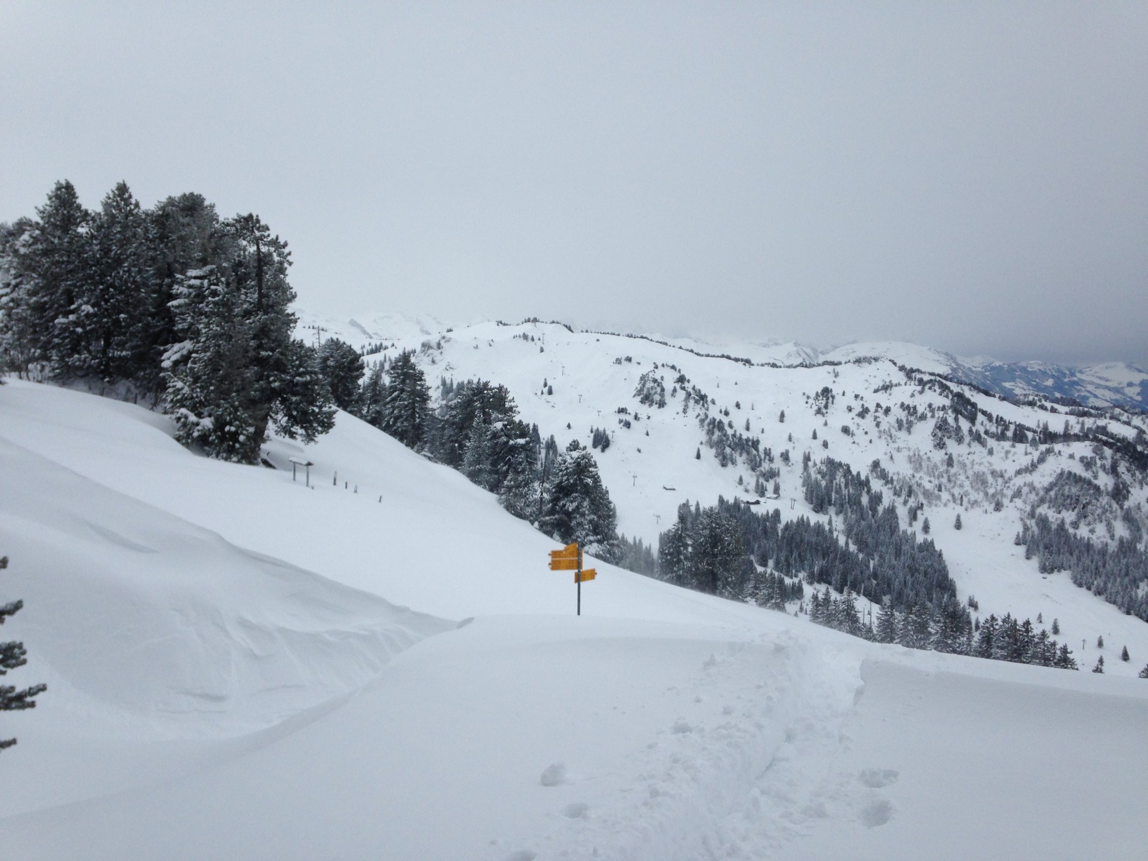 Start um 09.55 Uhr bei Bushaltestelle Tschalun. Keine Spur vorhanden, deshalb war selber spuren angesagt. Über reichlich Neuschnee vorbei an Grossweid und Chäswaldhütte.