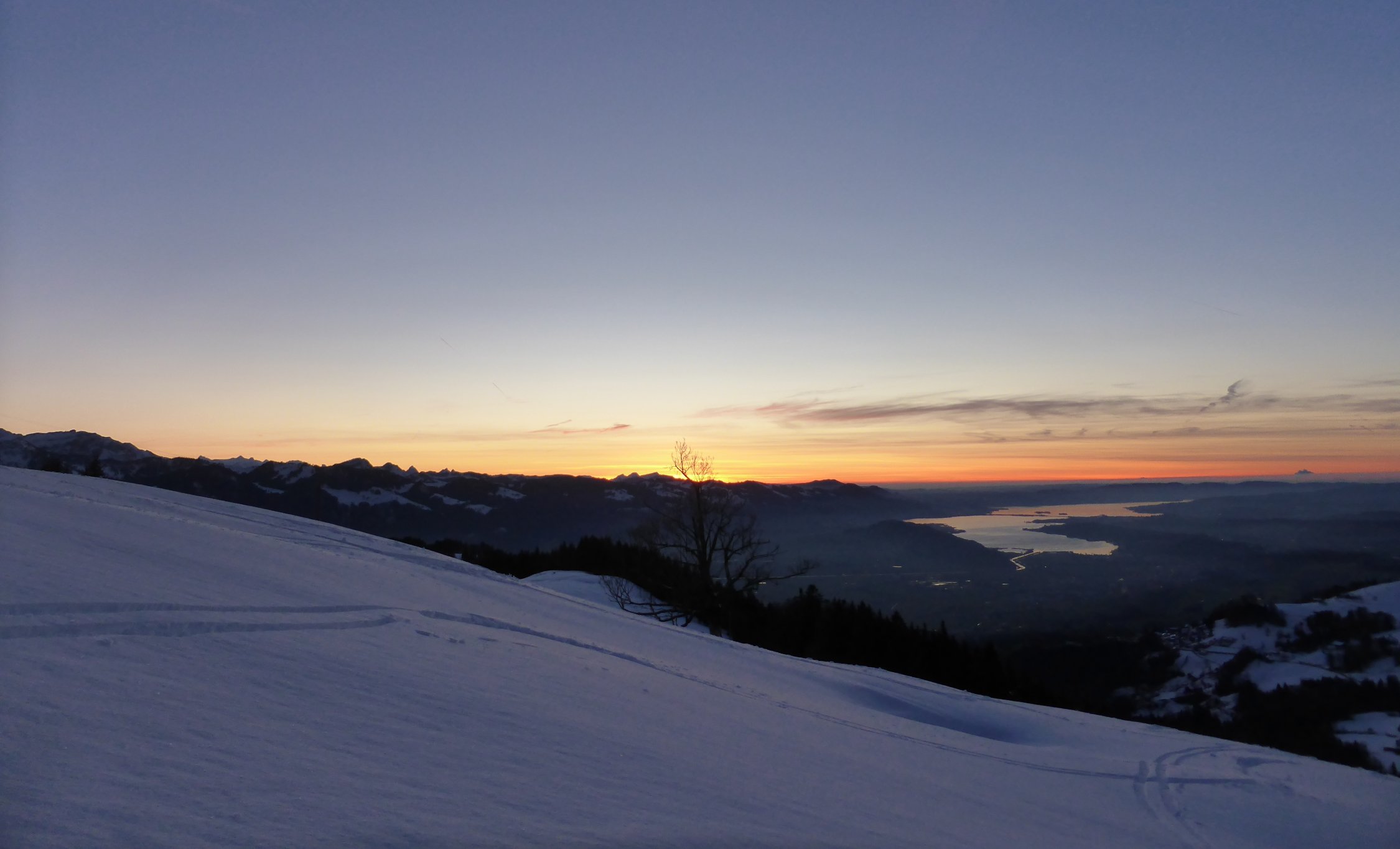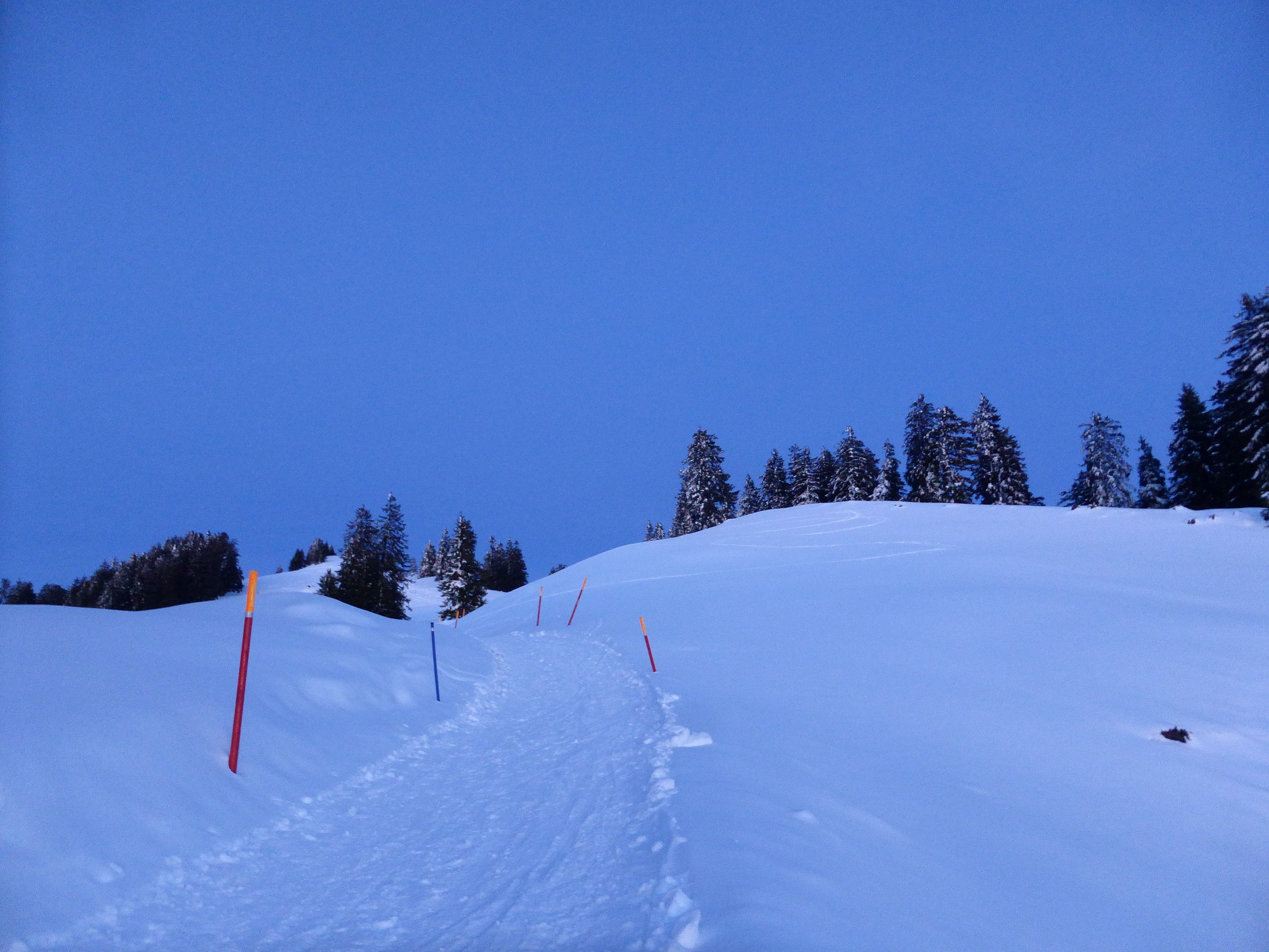 Bis 30cm Nassschnee, in Gipfelnähe abgeblasen