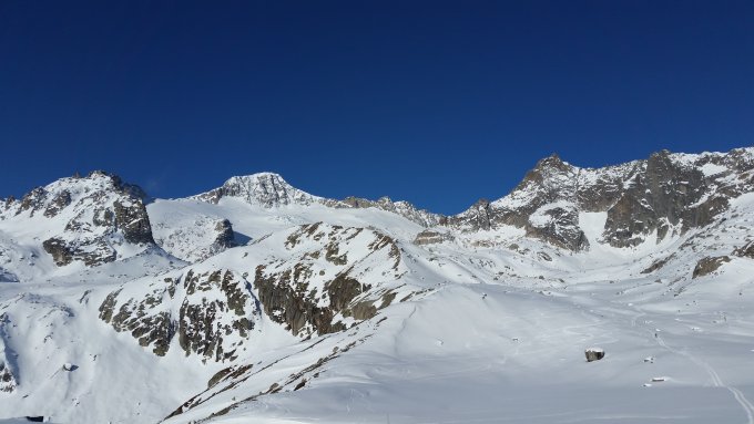 Einige Leute unterwegs. Gute Spur durchwegs von Realp bis Gipfel. Allgemein wenig Schnee aber ausreichend.