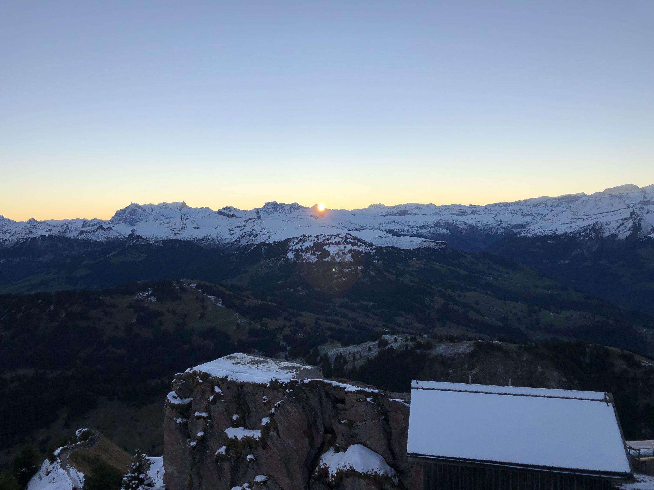 Aufstieg in der Nacht bei besten Verhältnissen. Etwas Schnee und Eis im oberen Teil. Fantastische Fernsicht!
