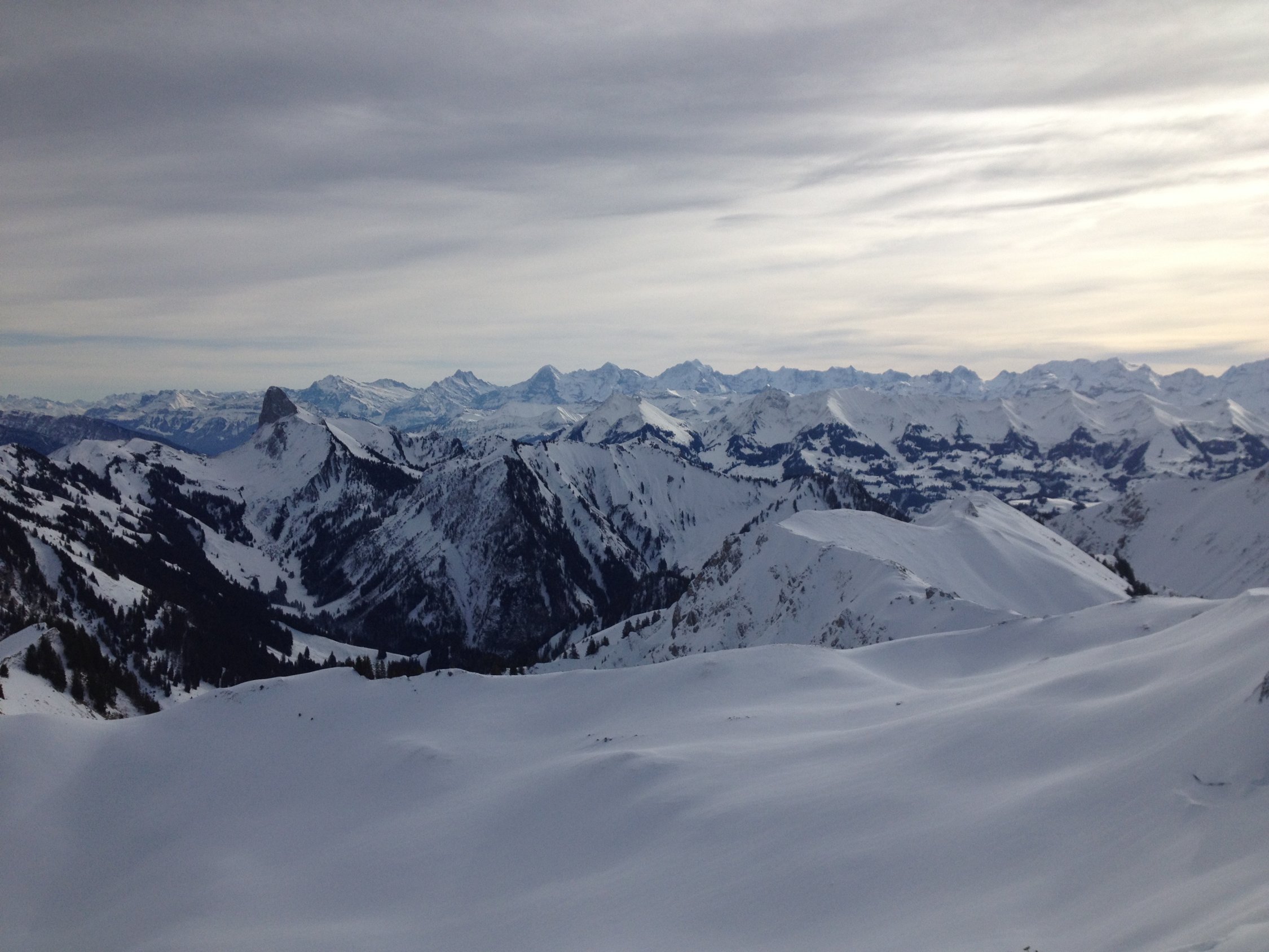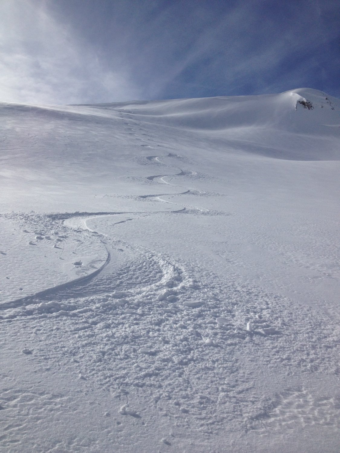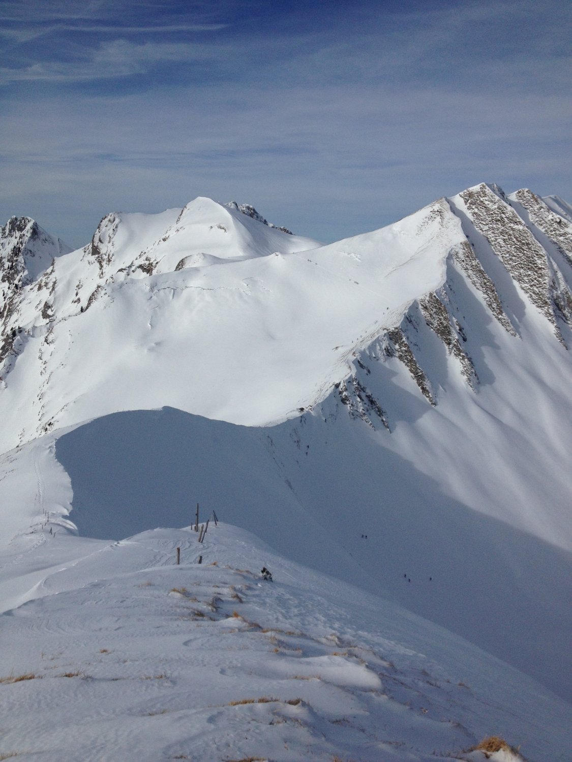 Für diesen Winter sehr gute Verhältnisse...Bin vom Schibespitzgrat ostwärts in den Chessel hinunter gefahren und habe schönen Pulverschnee auf guter Unterlage gefunden. Vom Schibespitz ins Chummli war der Schnee sehr schön zu fahren, bin dann hinter der Chummlihütte noch einmal kurz hochgestiegen und habe im Schatten der Bürgle über dem Gantrischsee auch noch schöne Schwünge machen können. Einsame Tour alle gehen auf die Bürgle. Heute sehr viele Leute im Gantrischgebiet unterwegs, da man/frau auf 1500m.ü.M. starten kann bei handgemessenen 68 cm Schnee. (siehe SLF)