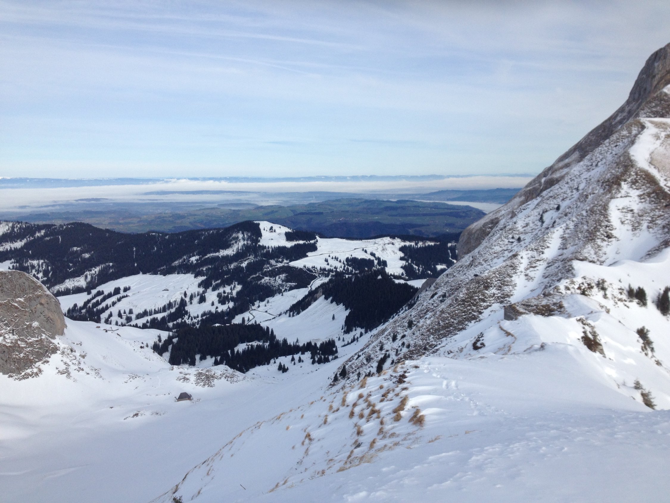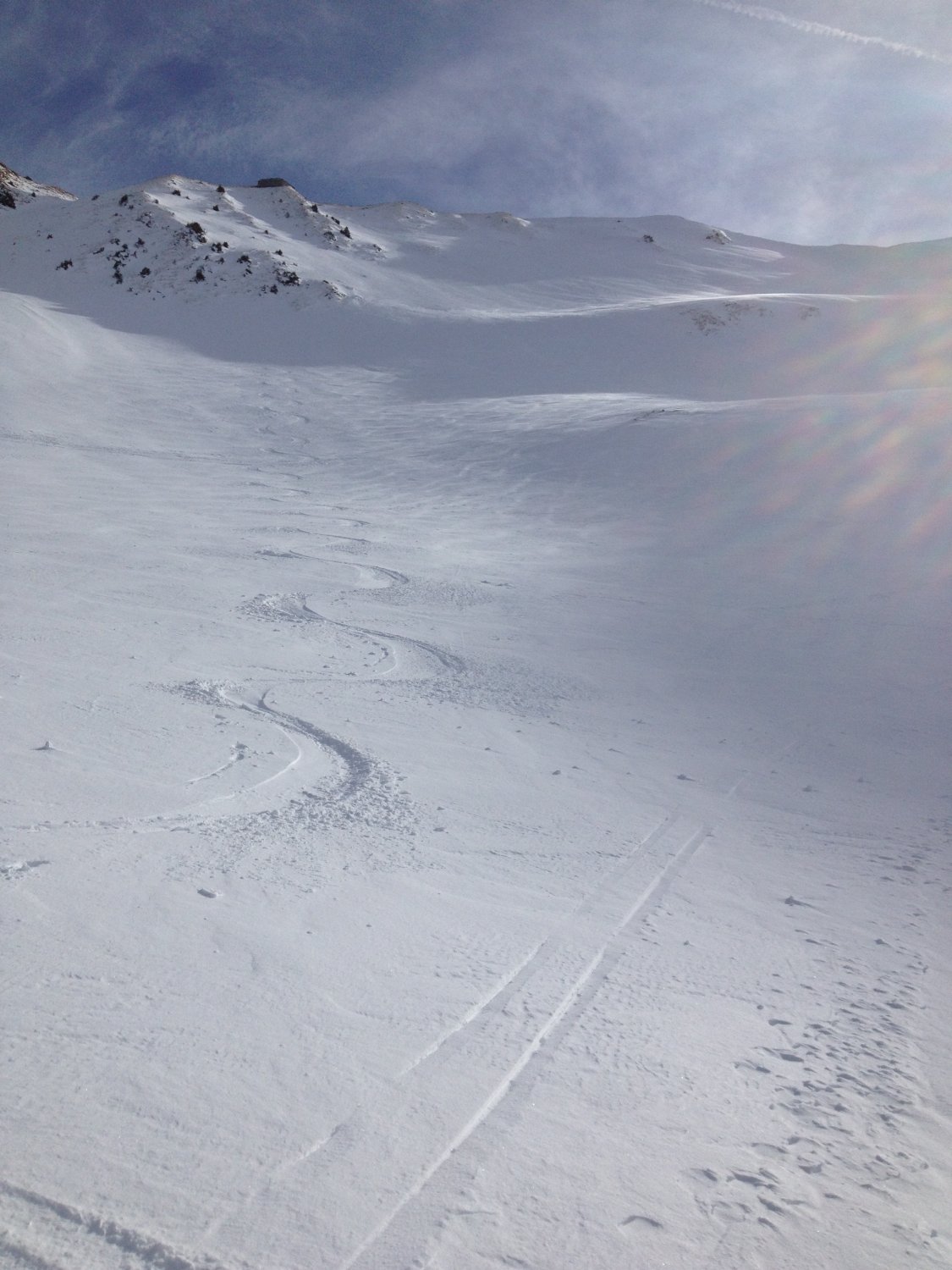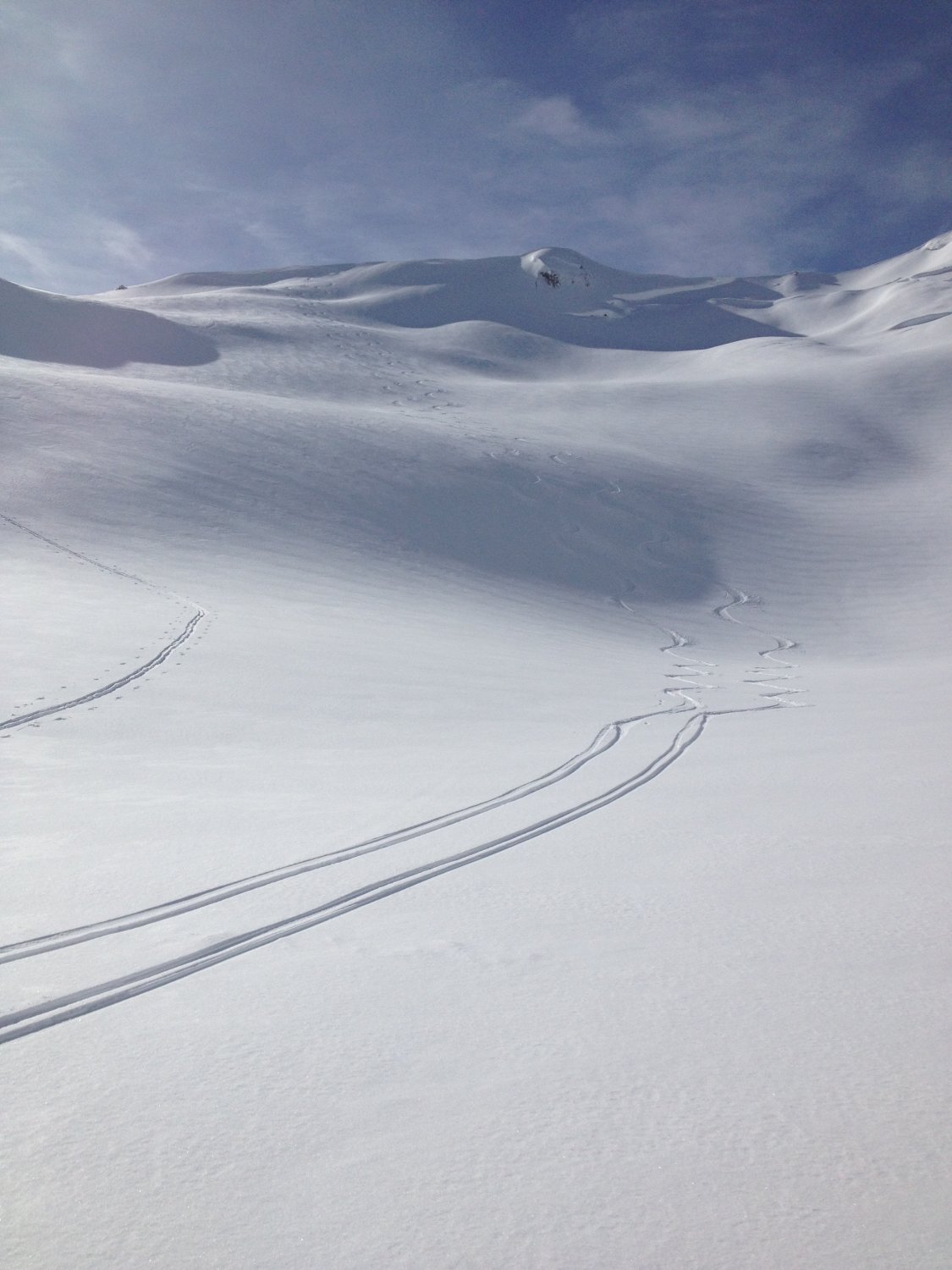 Für diesen Winter sehr gute Verhältnisse...Bin vom Schibespitzgrat ostwärts in den Chessel hinunter gefahren und habe schönen Pulverschnee auf guter Unterlage gefunden. Vom Schibespitz ins Chummli war der Schnee sehr schön zu fahren, bin dann hinter der Chummlihütte noch einmal kurz hochgestiegen und habe im Schatten der Bürgle über dem Gantrischsee auch noch schöne Schwünge machen können. Einsame Tour alle gehen auf die Bürgle. Heute sehr viele Leute im Gantrischgebiet unterwegs, da man/frau auf 1500m.ü.M. starten kann bei handgemessenen 68 cm Schnee. (siehe SLF)