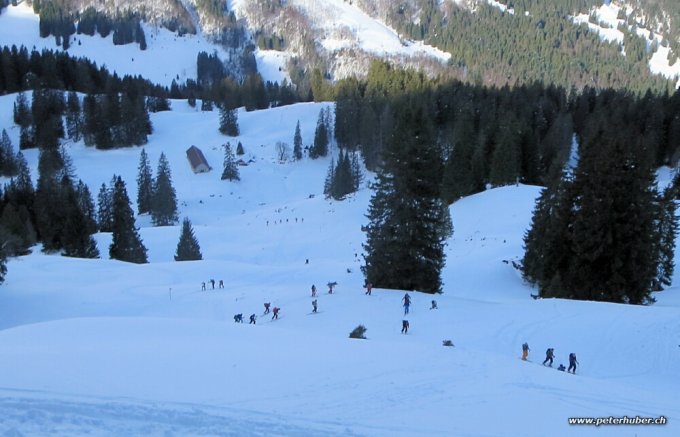 Es hatte einen sehr grossen Andrang auf Mutteristock und Redertengrat. Einige wenige sind auch Richtung Fluebrig aufgestiegen. Doch die Parkplätze reichten um 8:30 Uhr gerade noch aus.