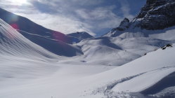 Ca. 30 cm gesetzter Neuschnee auf Grimmialp. Insgesamt nach wie vor sehr wenig Schnee für die Jahreszeit. Schulter ab Grimmifurggi recht gut Schneebedeckt.