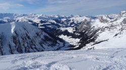 In der Abfahrt bis Grimmifurggi war der Schnee mit einem leichten Deckel überzogen, der aber relativ gut zu fahren war. Danach fanden wir noch genügend Pulverschnee bis Alp Grimmi.
