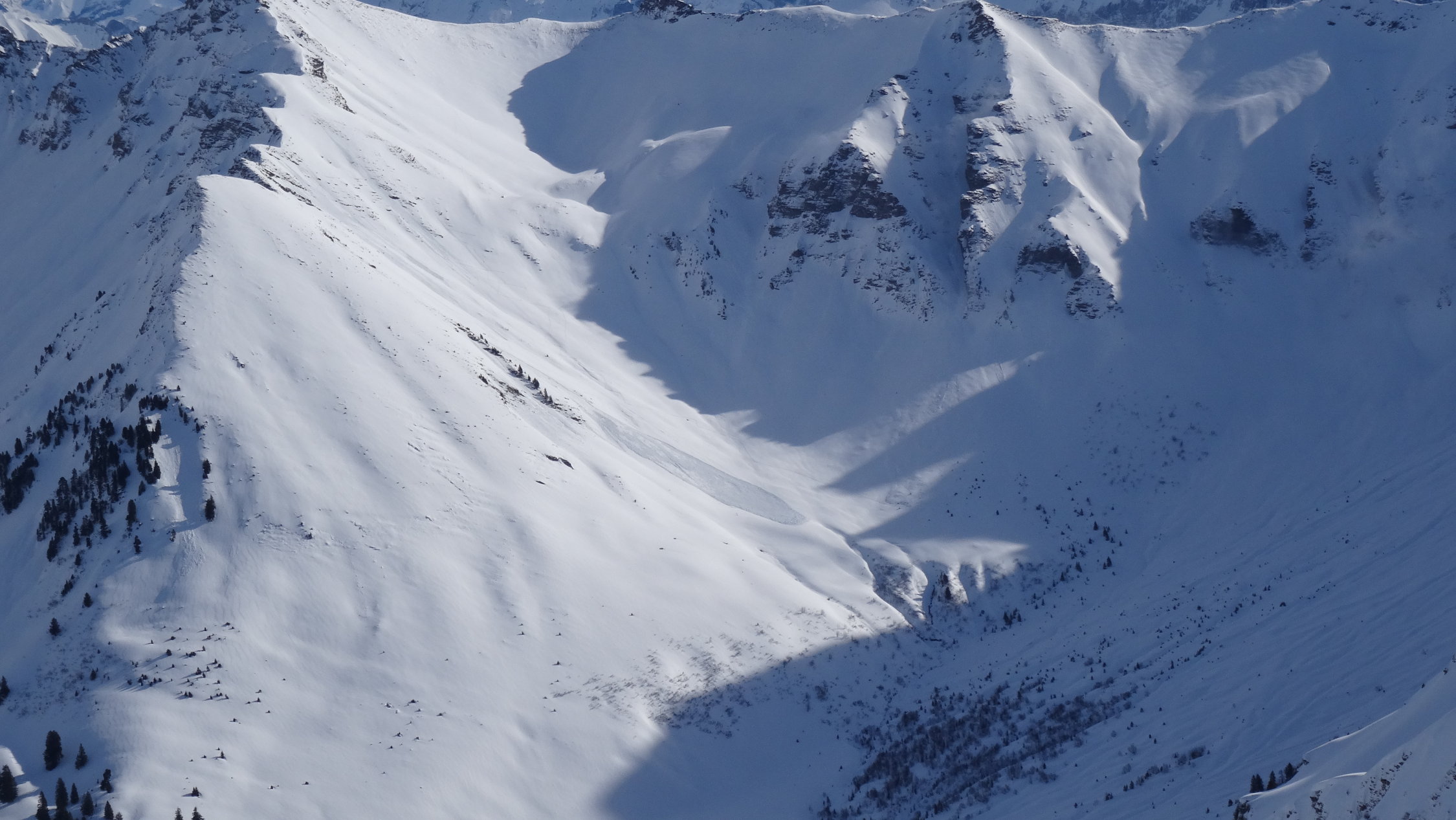Am Nordhang des Rauflihorn auf ca. 2100 war wohl während dem neusten Schneefall ein grosses Schneebrett abgegangen.