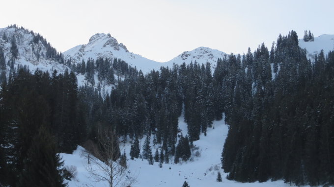 Wir sind nach der Mittagsspitze bis 1600m zum Waldrand unter Alpilia abgefahren und noch über Montabella 1846m auf den P.2187m zum Walser Alpjoch aufgestiegen.