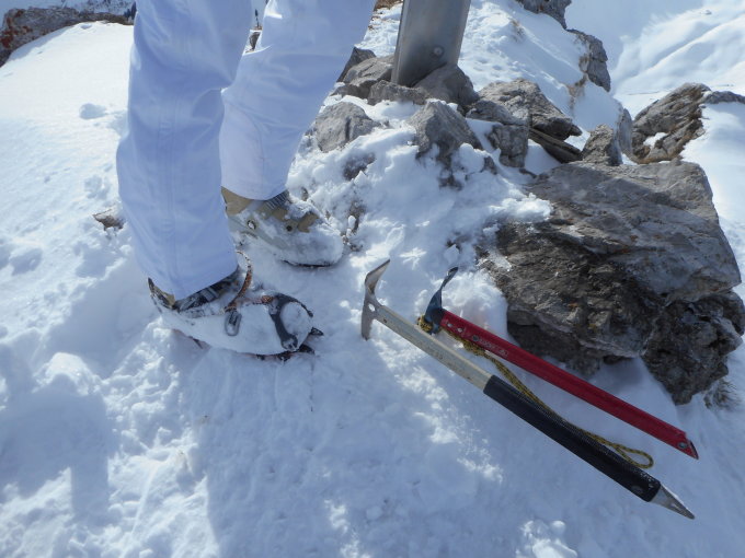 Aufstieg: Beste Verhältnisse vorgefunden. Sehr gute Spuranlage. Das Skidepot ist vereist. Pickel und Steigeisen waren ein muss, um die letzten 10 Minuten vom Gipfelgrat zu ersteigen. Einige sind wegen des fehlenden Materials nicht über den Gipfelgrat gestiegen.