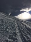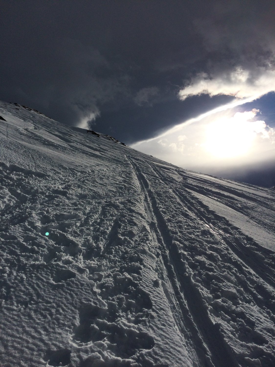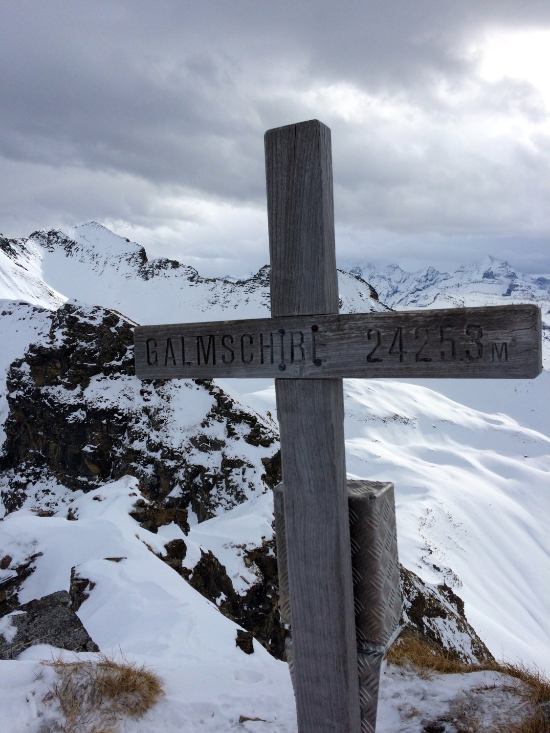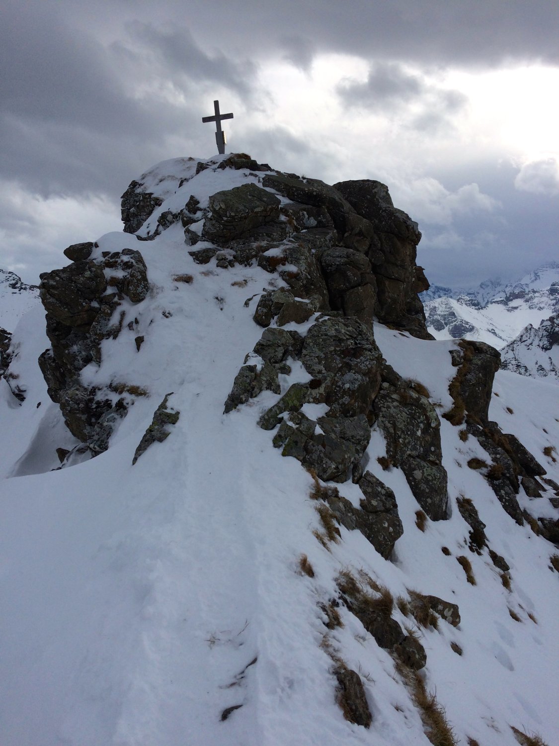 Dank dem Föhn blieb das Wetter am Vormittag recht gut. Der Schnee ist halt wie dieser Winter, na ja.....Ziemlich alles oben abgeweht, so das evtl. Harschteisen von Nutzen sein können. Ebenfalls das letzte kleine Kraxelstück zum Gipfel sind im Moment für etwas unsichere Türelen eher mit Steigeisen zu begehen. Sehr viel Pickelhart gefroren und zum Teil eisig.