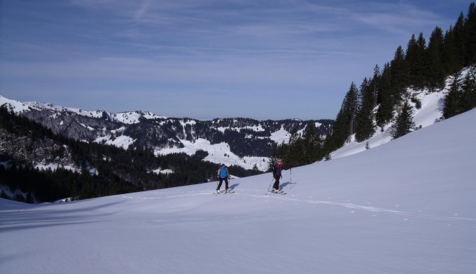 Am Gulme haben wir gute Verhältnisse angetroffen. Die Abfahrt durch die NO-Rinne bescherte uns Pulverschnee. Die zweite Abfahrt vom Häderenberg nach Stein war dann eher anspruchsvoll. Es hatte einen leichten Deckel, der gegen unten immer schwieriger zu fahren war. Aber wie sagt man - es gibt keine schlechten Verhältnisse, höchstens schlechte Skifahrer.