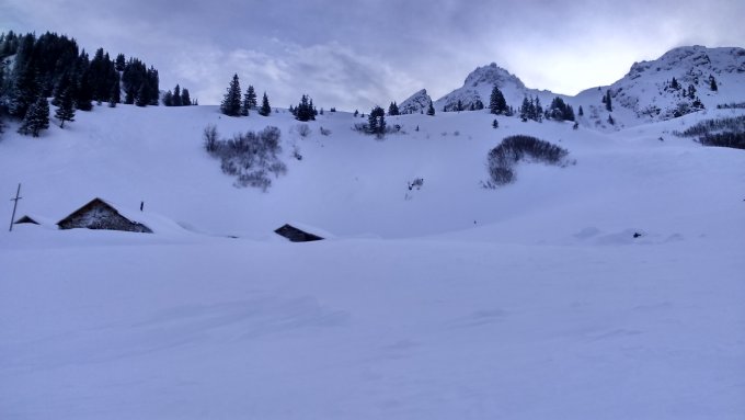 ab dem Rücken oberhalb der Alpe starke Verfrachtungen, die ein Weitergehen nicht mehr vertretbar machten, deshalb dort umgekehrt.