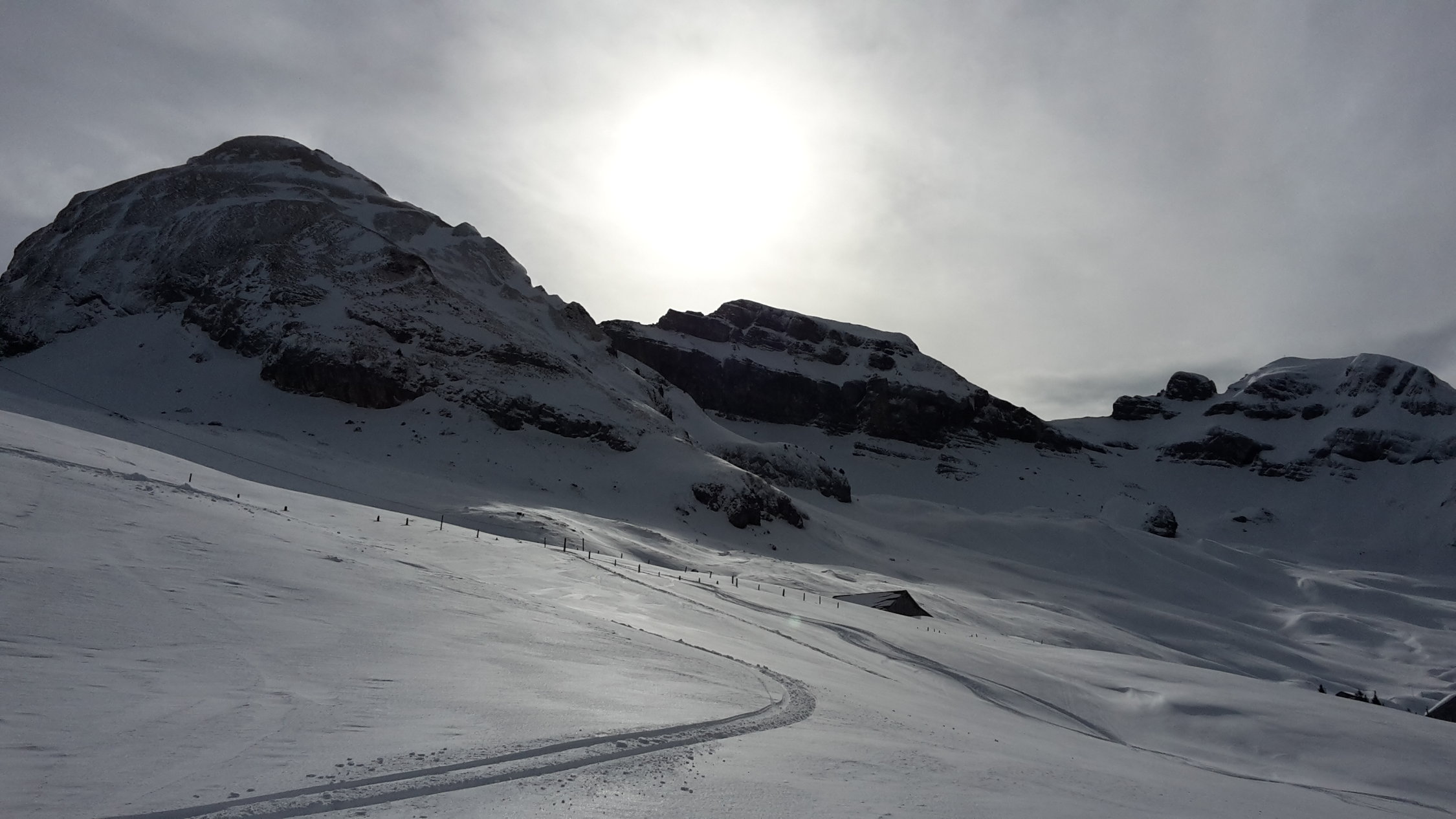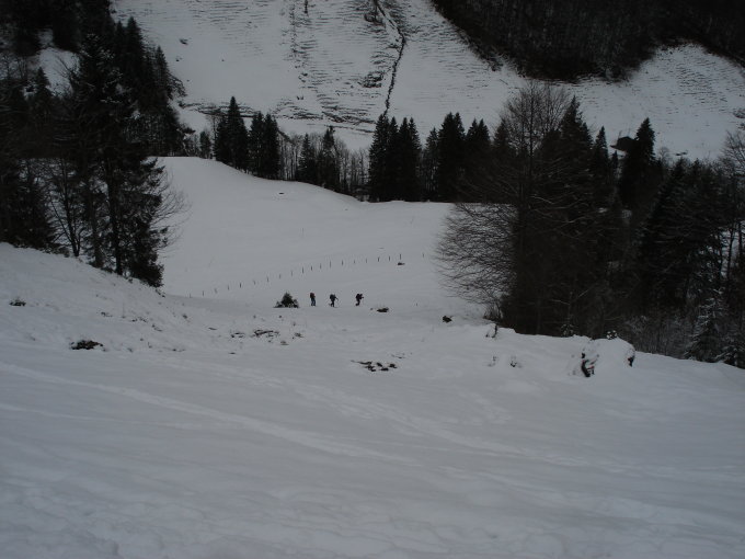 Start der Tour am 9.00 Uhr bei der Weglosen, bei eine Temperatur von - 1 Grad, entlag der Schlittelpiste zur Druesberghütte, wo sich lässtige Stöllen bildeten was zu einer Montasche des reserve Fells führte, ab 1700 m dann ein starker Föhn der den schönen Pulverschnee vom Vortag wieder Verfrachtet, der Schlussaufstieg zum Gipfeldach ist zur Zeit ziemlich abgeblasen, der Gipfelaufenthalt beschränkte ich auf wenige Minuten, da gerade sehr windig, die Abfahrt konnte ohne Steinkonakt bis Weglosen mit durchgehender Schneedecke gemacht werden, aber sehr wenig Schnee im Gebiet.