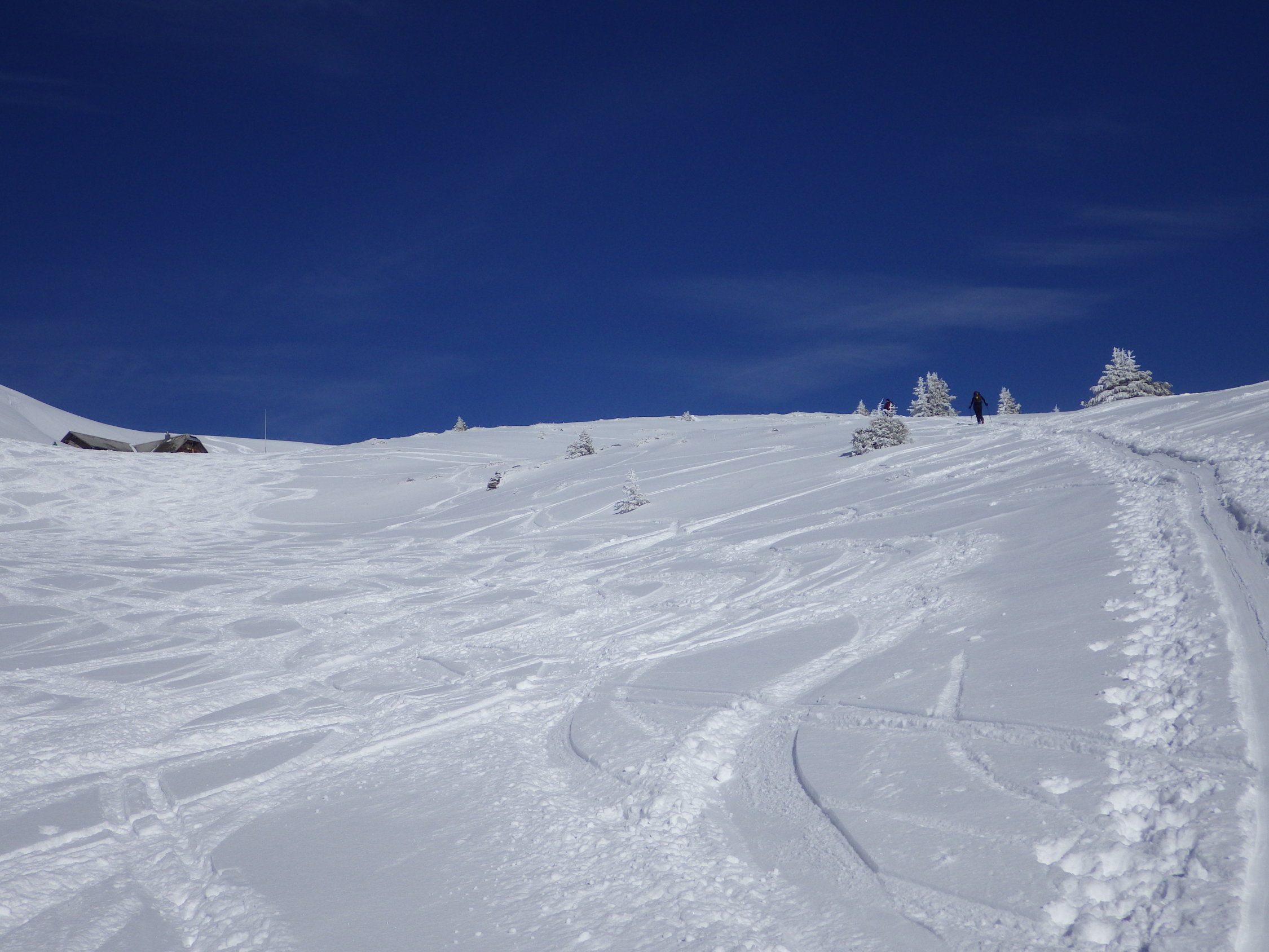 Die Abfahrten sind in diesem Gebiet sind schön, aber auch relativ kurz. Dafür bietet das Gelände traumhaft schöne Landschaftsbilder und phantastische schöne Ausblicke, besonders dann, wenn der Wind mit dem Schnee „gespielt“ und die Landschaft geformt hat.