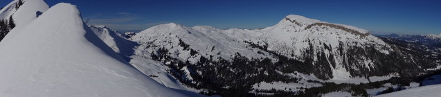Start 12 Uhr in Baad bei noch Minusgraden im Schatten. Intensive Sonne im südseitigen Anstieg durch die Schneise und Richtung Ochsenköpfe. In den flachen Bereichen unter den Ochsenköpfen wiederholt Wummgeräusche - durch die Sonne wirkt die Schneeoberfläche gut verdichtet. Problemlose Querung zur O.hofer Scharte - Abfahrt zur Schwarzwasserhütte hätten wir uns wächtenbedingt nicht getraut. Grünhorn Aufstieg und Abfahrt zur Starzelalpe: absoluter Traumschnee mit jetzt 5 Spuren. Wiederaufstieg Richtung Ochsenköpfe, Abfahrt zurück nach Baad in Schneise sehr unangenehm weil inzwischen stark harschig. Karlstor(von Norden) und Güntlesspitze wurden auch begangen.