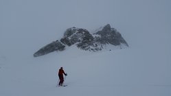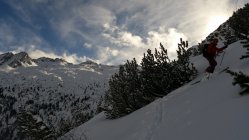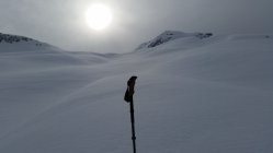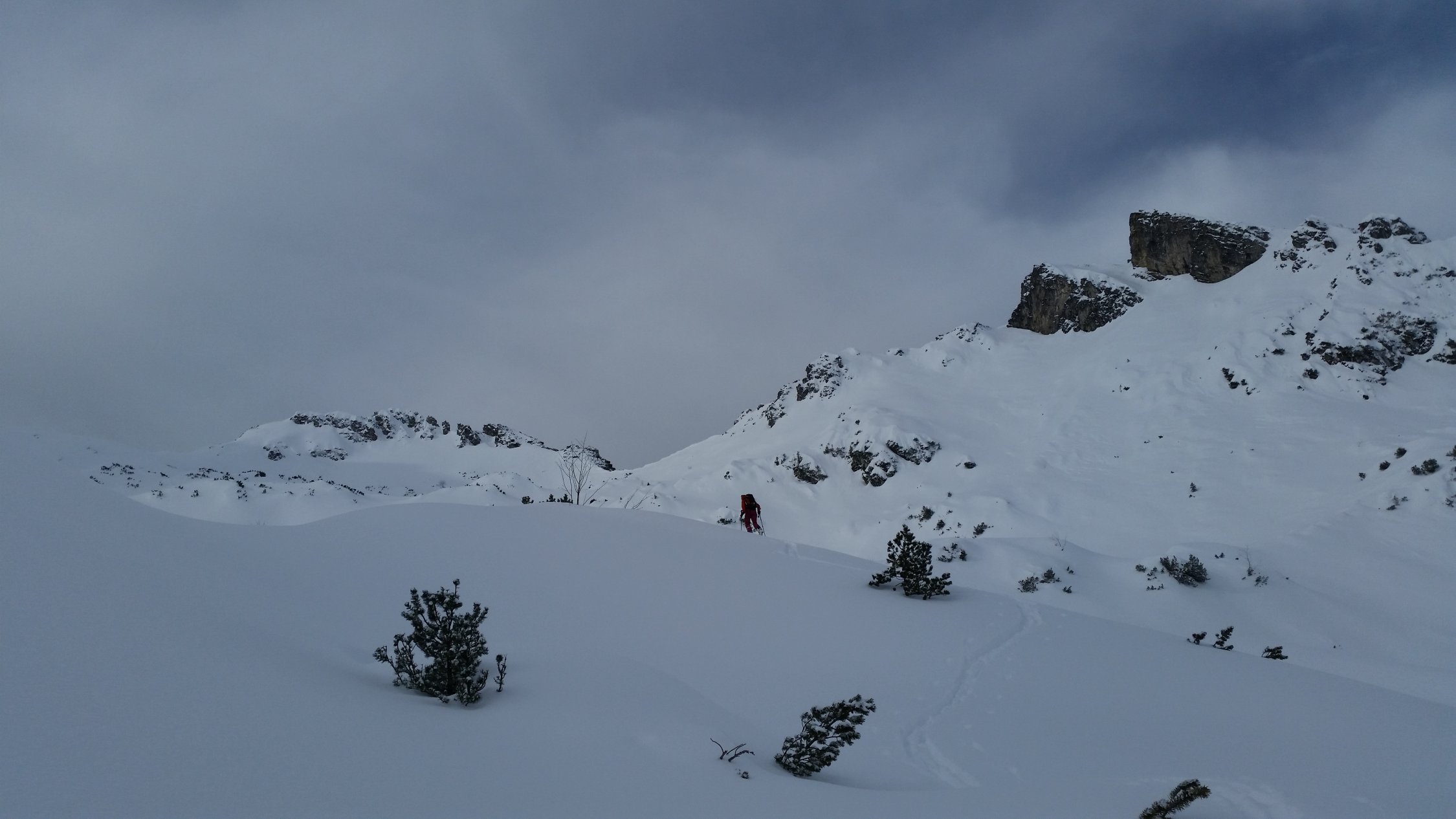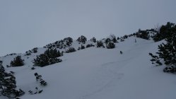 Geschlossene Schneedecke ab Parkplatz. Zuerst etwas feucht dann immer bessere Verhältnisse. Super Pulver. Dem Forstweg bzw. Wanderweg entlang bis zu den freien Hängen. Schneefall und etwas Wind haben uns ständig begleitet. Leider wurde der Wind dann stärker und schnell kamen Wolken und etwas Nebel. Ein Stück in die steilen Hänge unter den Misthaufen aber zu labile Schneedecke im steilen Gelände. Schnee hammerässig. Beim Rückweg der untere Teil schon sehr durchfeuchtet und Nassschneerutsche über die Aufstiegsspur.