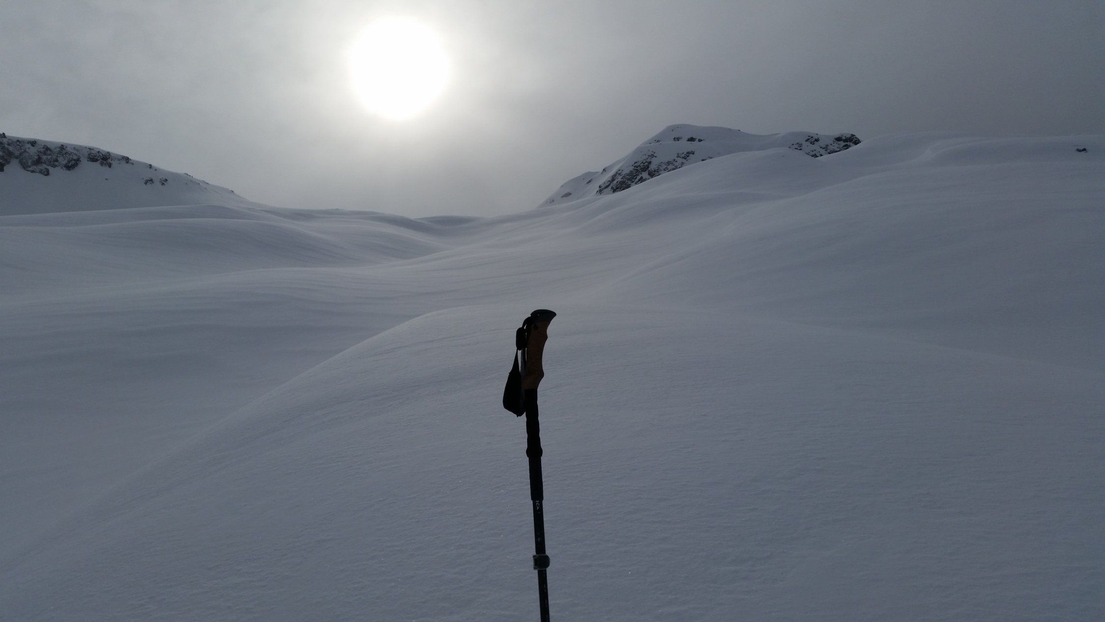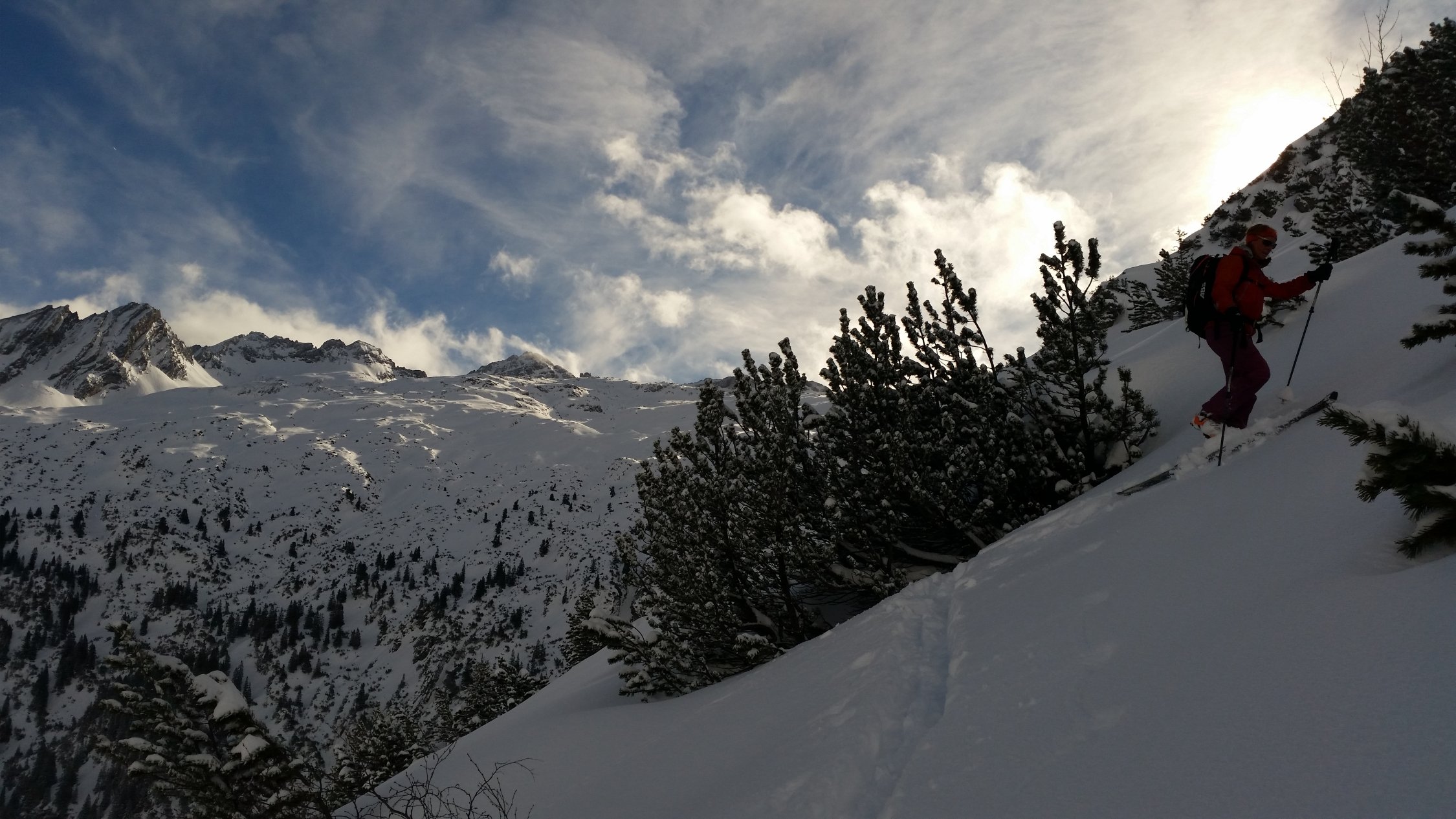 Eher einsame Skitour. Hier sind nicht viele Tourengeher unterwegs. Alles selber gespurt (abwechslungsweise)
