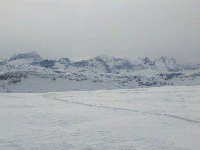 Oben gut Schnee, teils windverfrachtet. Leider ein wenig strukturlos durch das Licht. Oberen Teil ab 1400 gut Schnee.